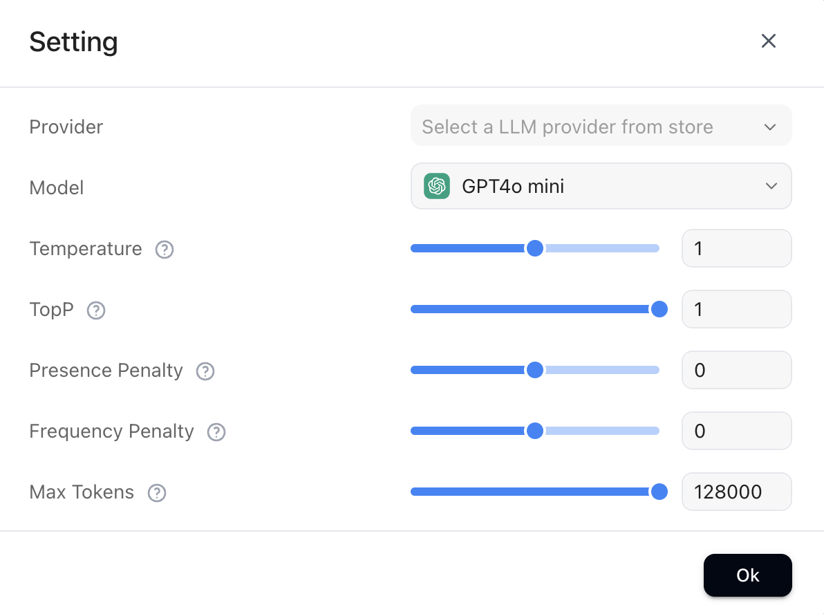 你可以在 AIGNE Studio 中任意大语言模型 Agent 的模型设置中选择最新的 GPT4o mini 模型(当然,你也可以在项目的模型设置中设置默认模型为 GPT4o mini,这样新建的 Agent 将默认使用该模型)。