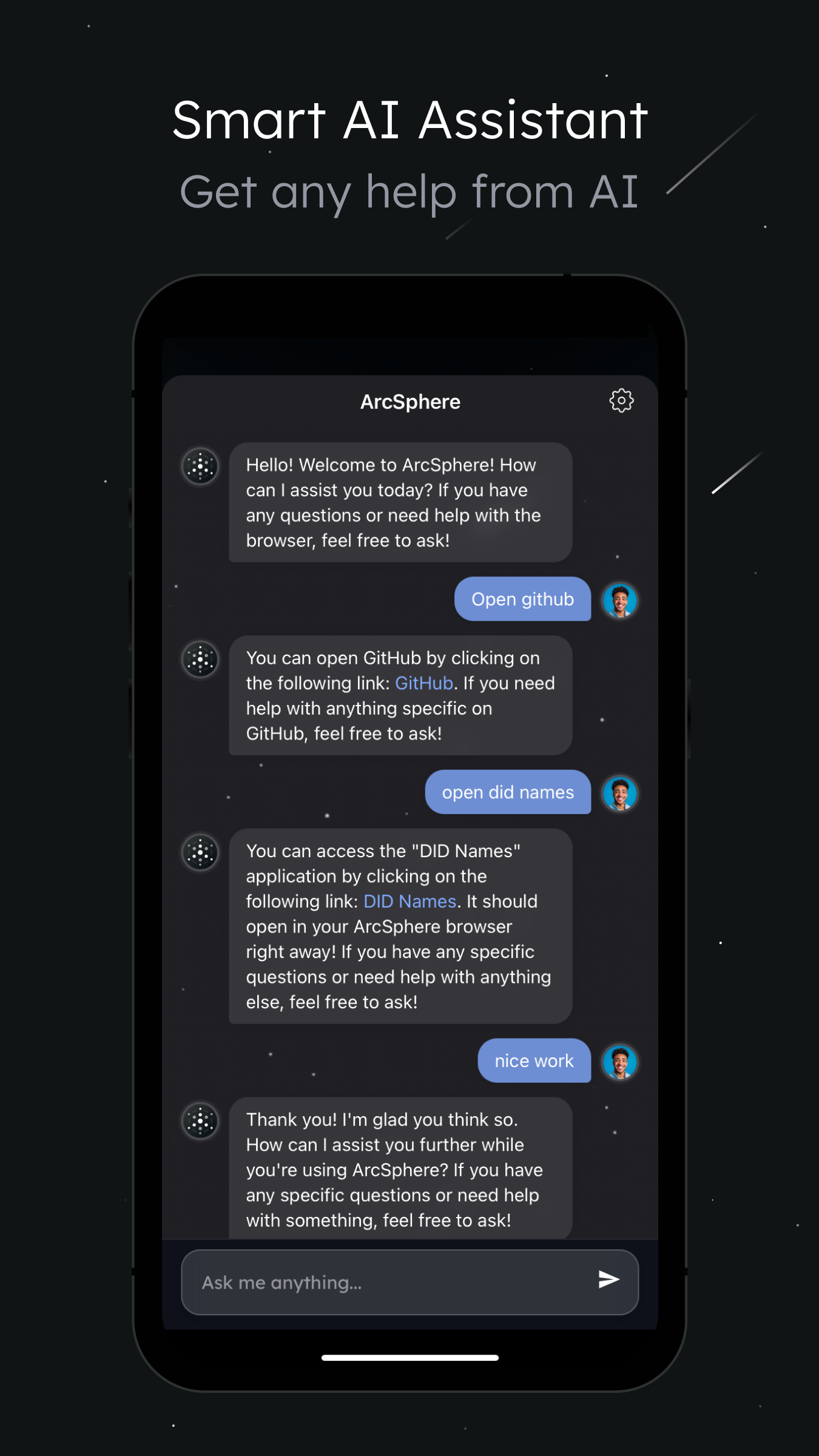 ArcSphere 的 AI 助手直接内置于浏览器,可将您的网络体验转变为智能工作流: