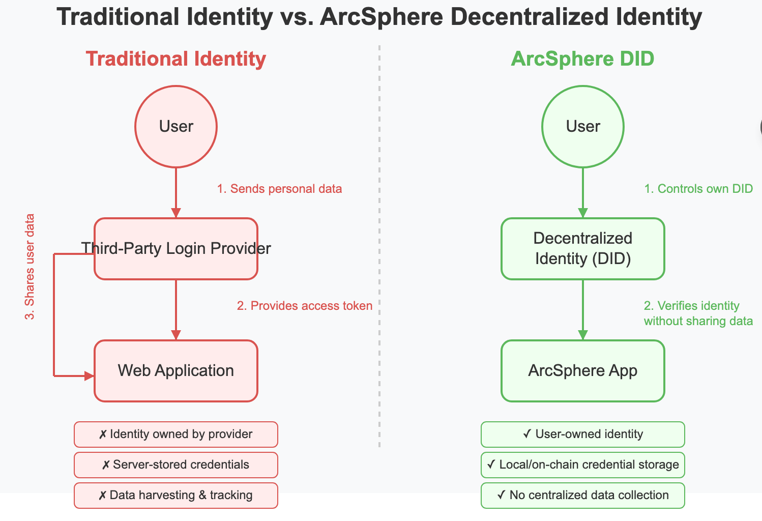 - Developers building apps on ArcSphere can interact with user identity without needing to handle sensitive data themselves.