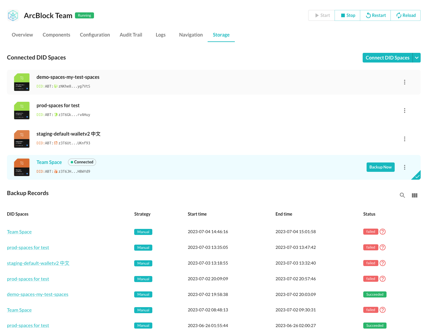 新版中可以方便的连接多个 DID Space 空间,然后随意切换备份空间,并查看备份日志: