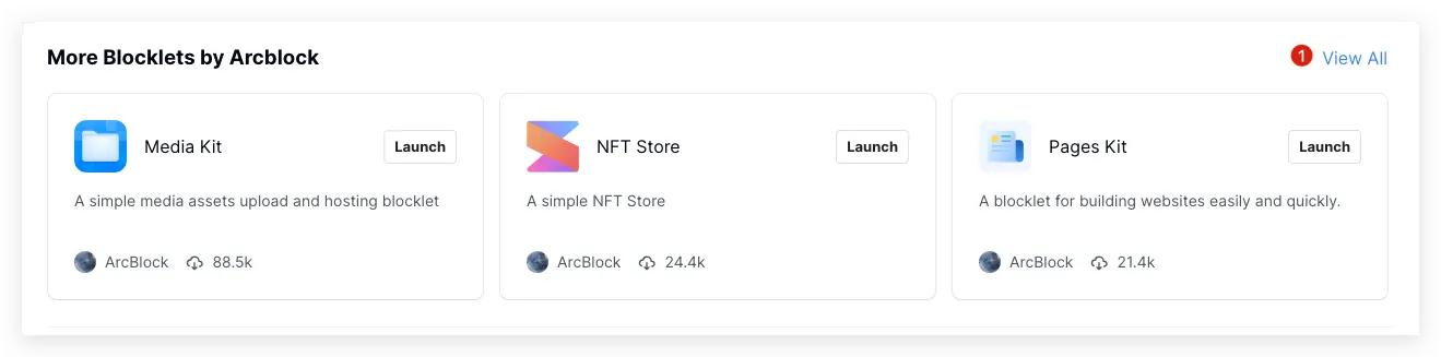 显示作者的其他 Blocklet,点击 ① 更多 可以展示更多列表。