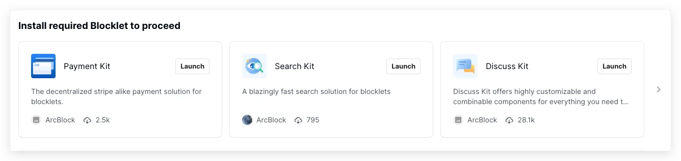 展示更多同类型的 Blocklet,点击 ① 更多 可以展示更多列表。