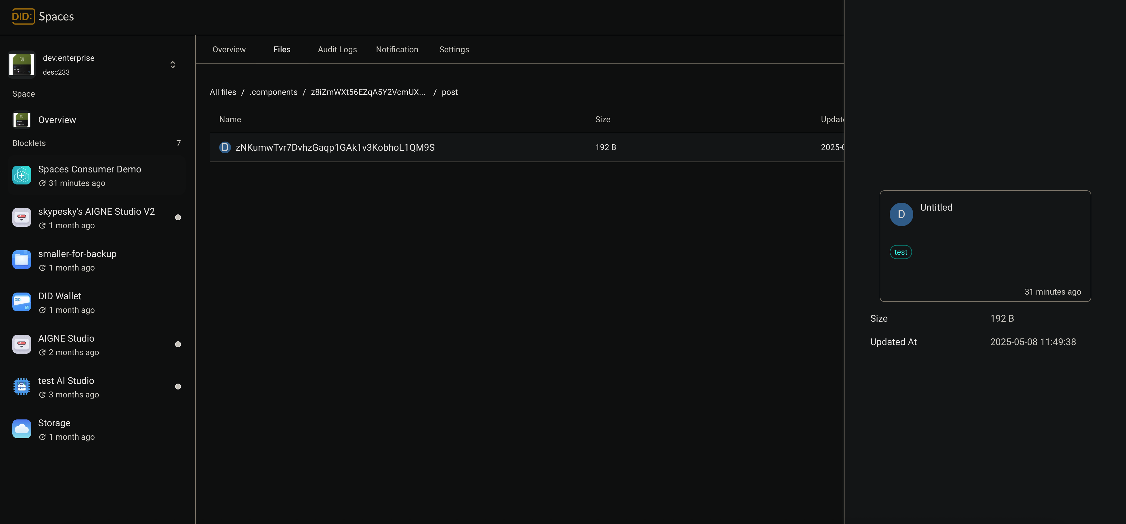 我们对 DID Spaces 进行了全新视觉升级,现已推出深色主题模式,覆盖所有页面。新主题不仅外观时尚现代,还能有效减少视觉疲劳,带来更舒适的浏览体验。此次更新在提升美观度的同时,也优化了可用性,使日常操作更加流畅便捷。