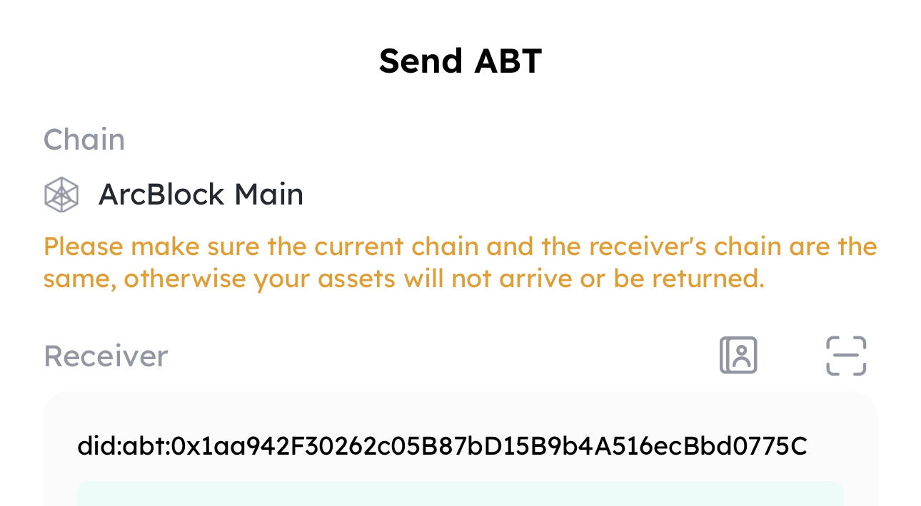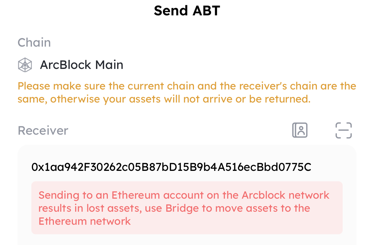 在 ArcBlock 官方社区和去中心化的用户社群里面,有不少用户会因为没注意检查目标链而发生在错误链上进行了转账的误操作,导致资产白白丢失。我们也非常关注这个问题,这个版本我们在钱包的发送页面增加了更加完善的检查机制。