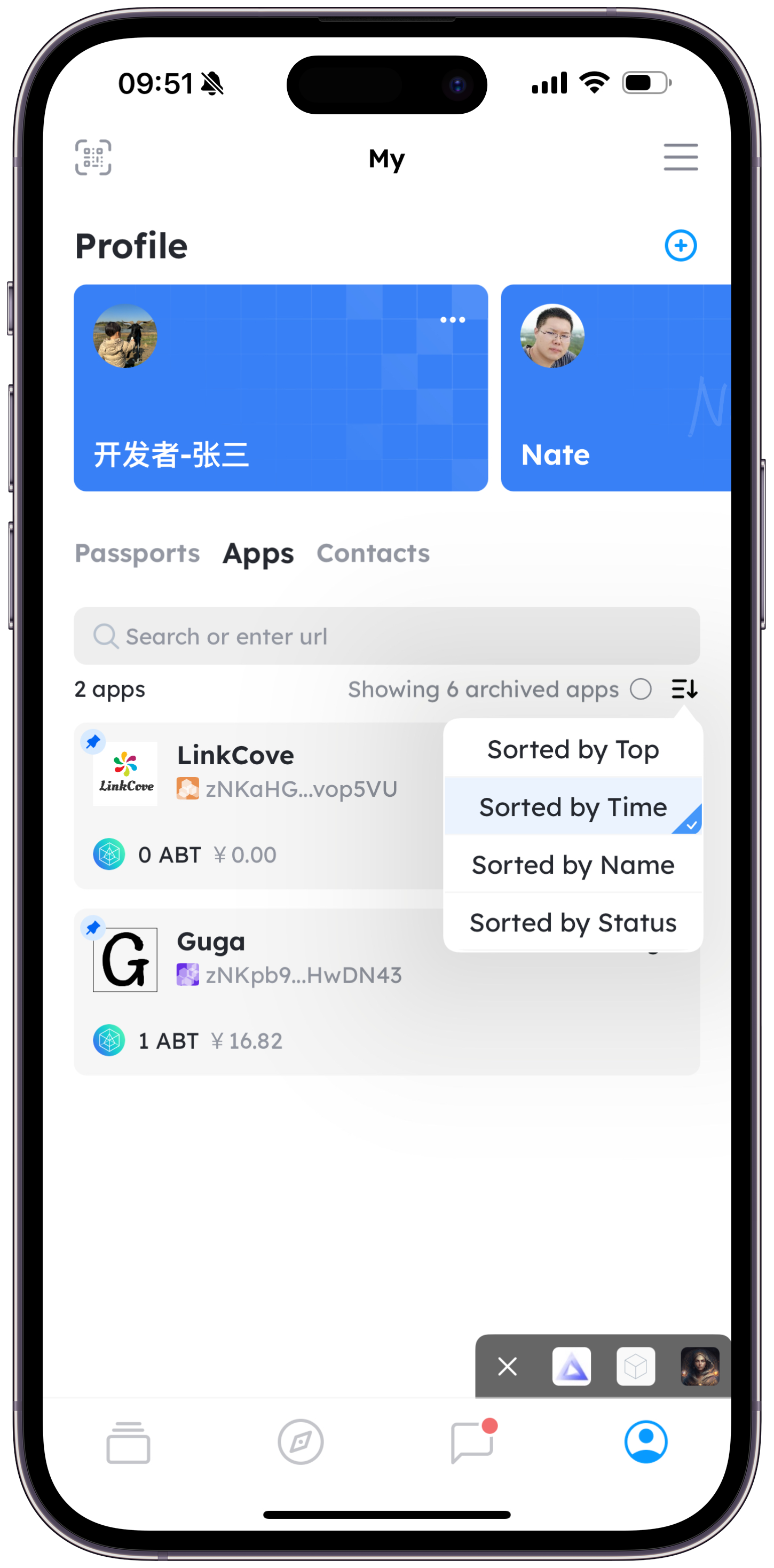DID 钱包还是一个管理自己运行的应用的地方,“我的应用” 页面现在支持了更多的排序方式