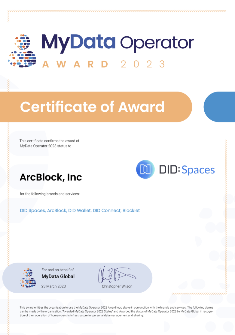 We are proud to announce that our DID:Spaces has been awarded as one of MyData Operator 2023!