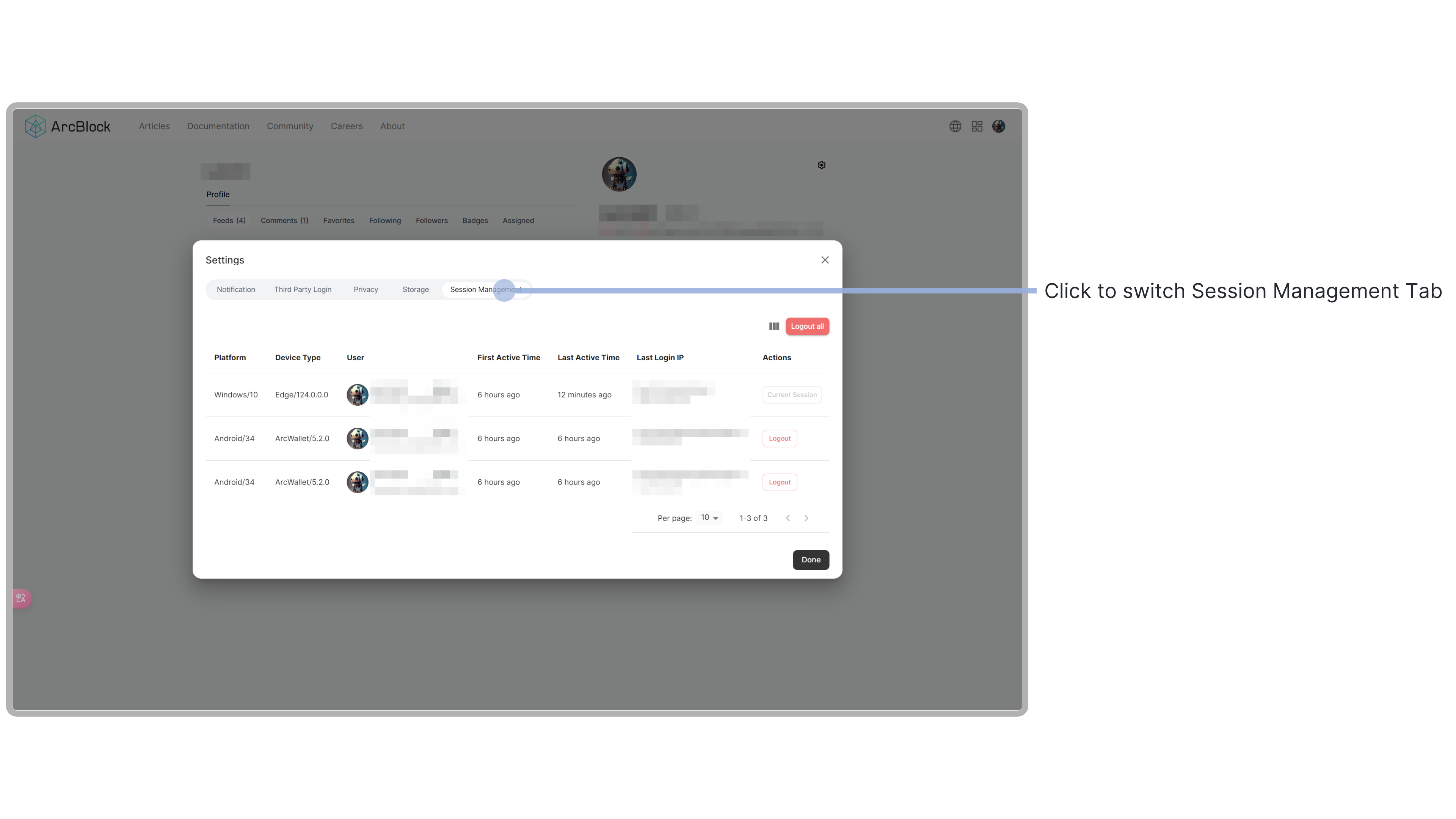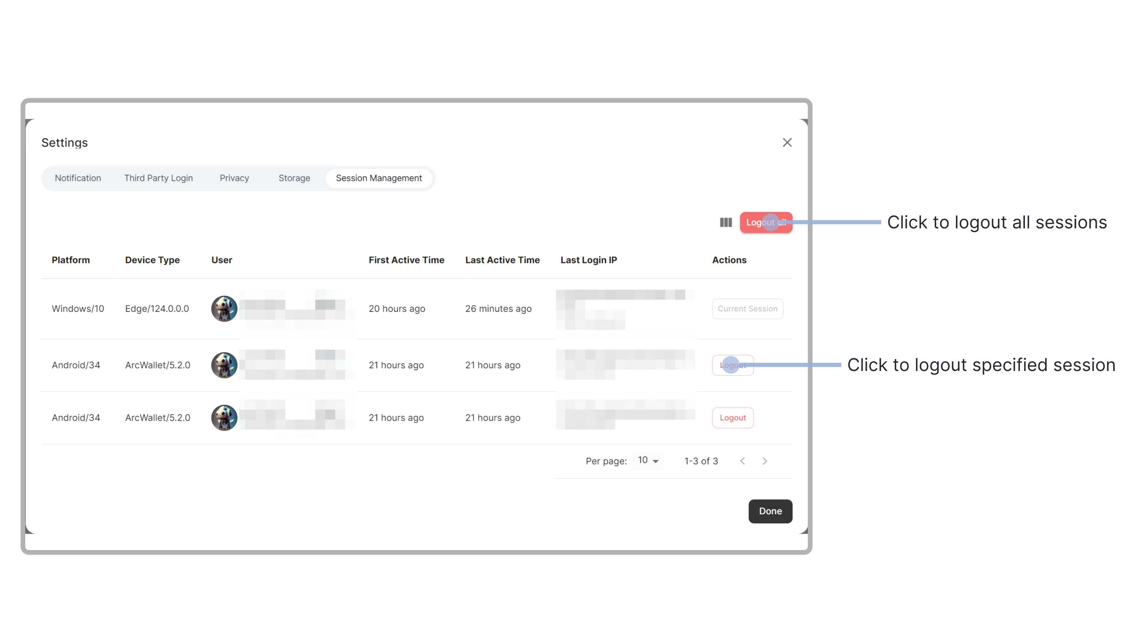 - Users can also manage other login sessions on the page, forcibly log out a specific login session, or log out all other login sessions except the current page