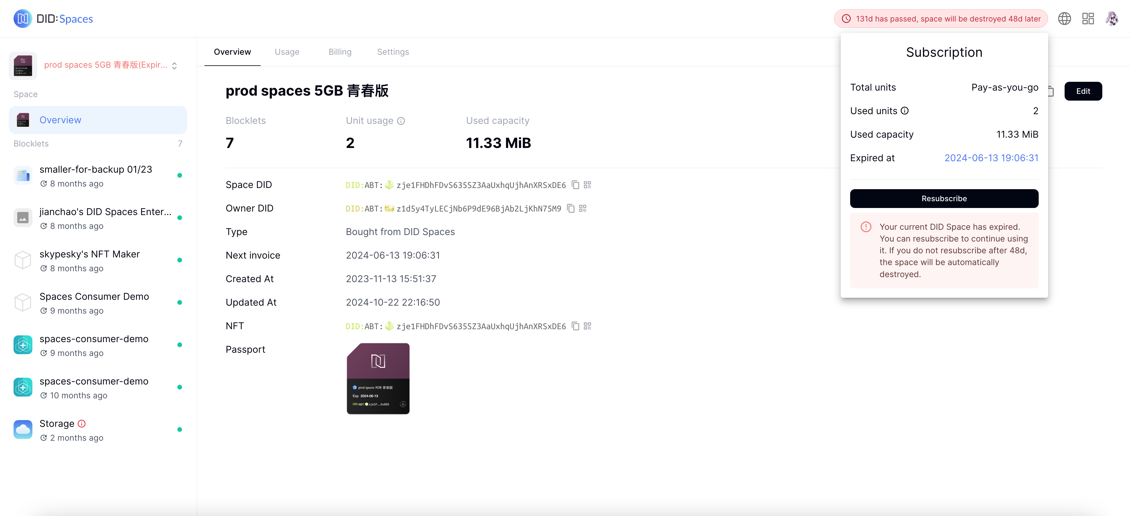 Be sure to log in and review your DID Spaces to see if you may be impacted. If you wish to keep the data, check the subscription status on https://www.didspaces.com/app/space/ and complete the Renewal operation as needed. If you do not need to keep it, you can ignore it.