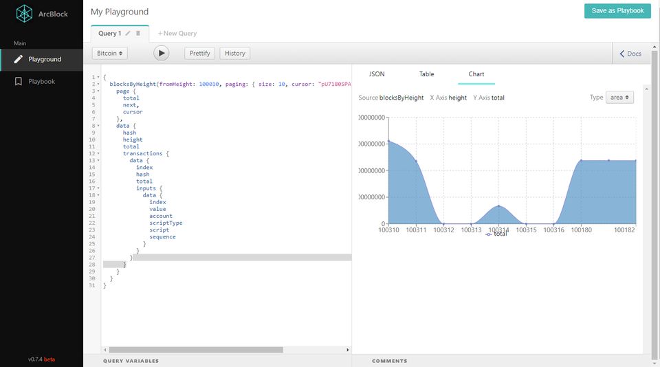 For the convenience of developers, ArcBlock provides different rendering formats, such as tables for most data presentation, and charts for more intuitive understanding of some data. If developers are not familiar with Bitcoin and Ethereum data formats, OCAP Playground provides integrated documentation to learn more about the data formats and structures of different blockchains. If the developer makes multiple queries, you can easily call up various results by clicking on different query codes through the history function.