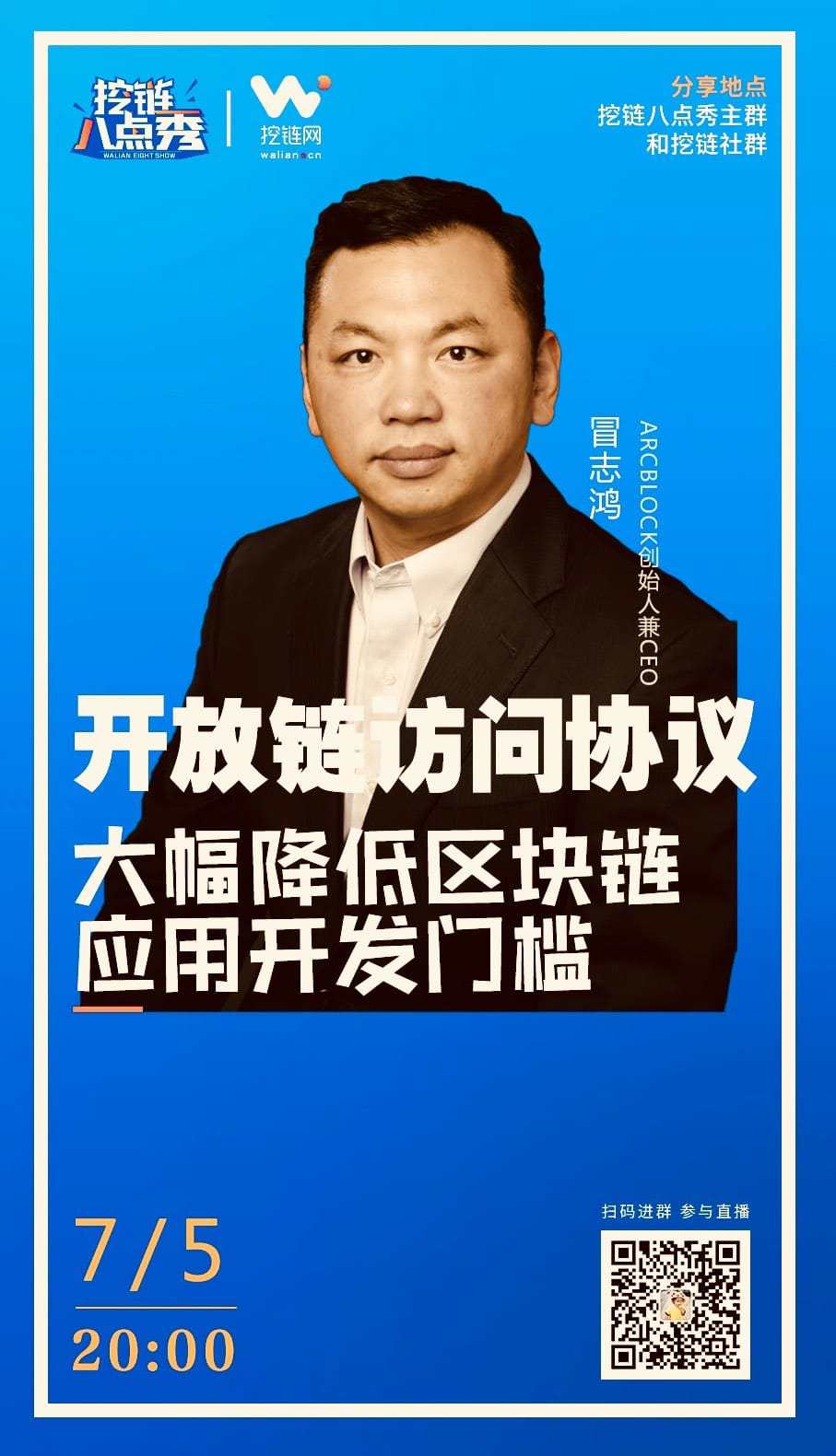 7 月 5 日晚 8 时,老冒做客挖链网主办的“挖链八点秀”,详解“开放链访问协议”如何大幅降低区块链应用开发门槛……