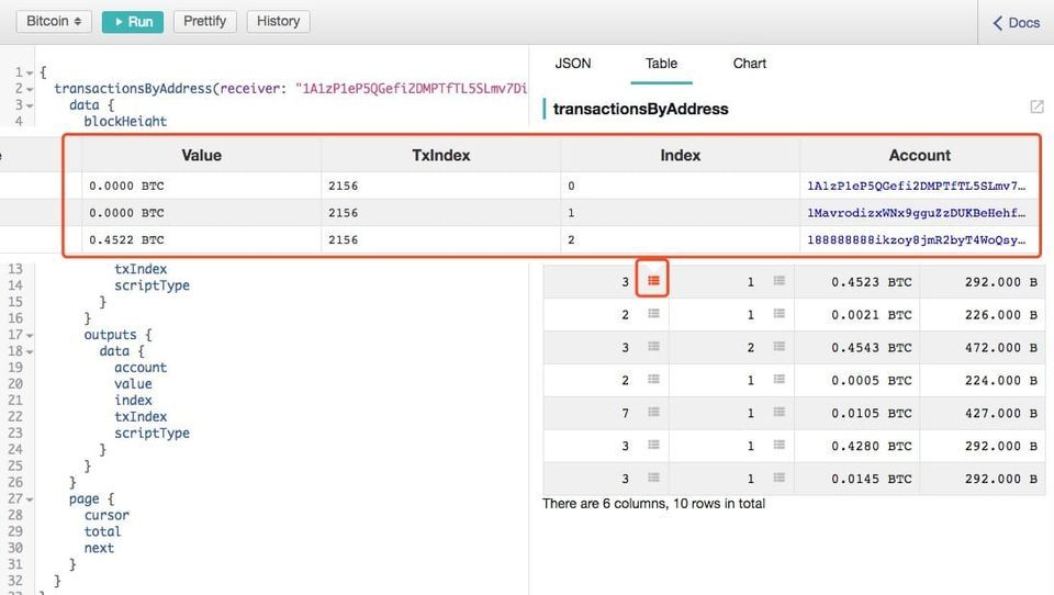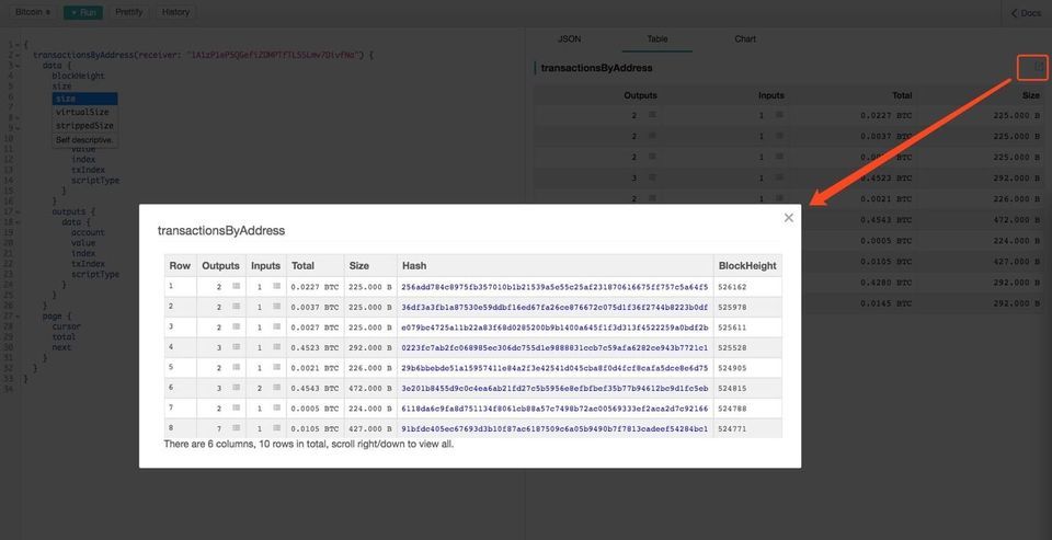 如果查询结果中包含了区块列表,Playground 会自动增加 BlockList 图表的支持,比如下面的查询: