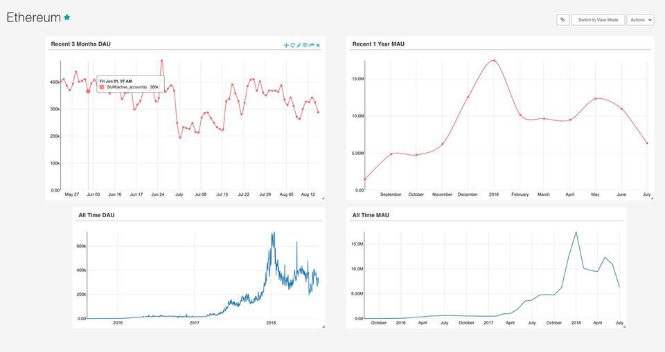 Right now we are using Apache Superset to create visualizations of DAU (Daily Active Users) and MAU (Monthly Active Users) of Ethereum. In the future, we will add more visualization to the collection of on-chain data analysis, such as users' retention rate and the number of colde wallets.