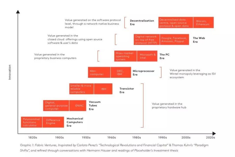 当我受 Flavien 启发,以“空杯”心态认真考察区块链时,发现区块链是可以与上世纪九十年代互联网商业化媲美、推动互联网由信息互联网向价值互联网跃迁质变的大机会,而非移动互联网、O2O、人工智能这种主要由人口红利、资本集聚推动打造的“风口”可比拟。正是区块链处于目前这样一个混沌初开的时代,才有可能是最好的时代。因为这意味着所有的个人、新创小企业和行业巨头都站在同一条起跑线,意味着也许你就可以改变这个世界。