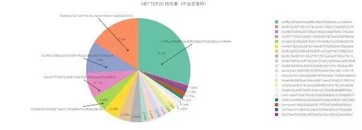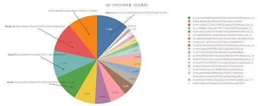 These two charts are a pie chart analysis of the main holders of ABT currently circulating in the secondary market. The first picture contains exchanges, and the second does not. It can be seen that the largest individual shareholder is address 0 xffbe389a8059aafdf6c88ed1f540e06cca1d8444 account. Its holdings of ABT accounted for 29.8% of all personal holdings.