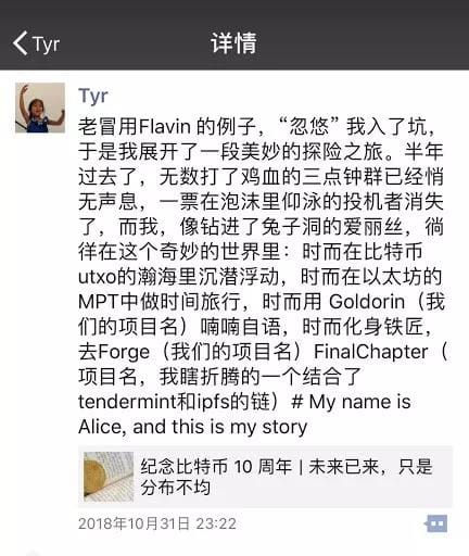 Chen Tian also published his own feelings on joining the blockchain movement when retweeting Mao’s commemorative article
