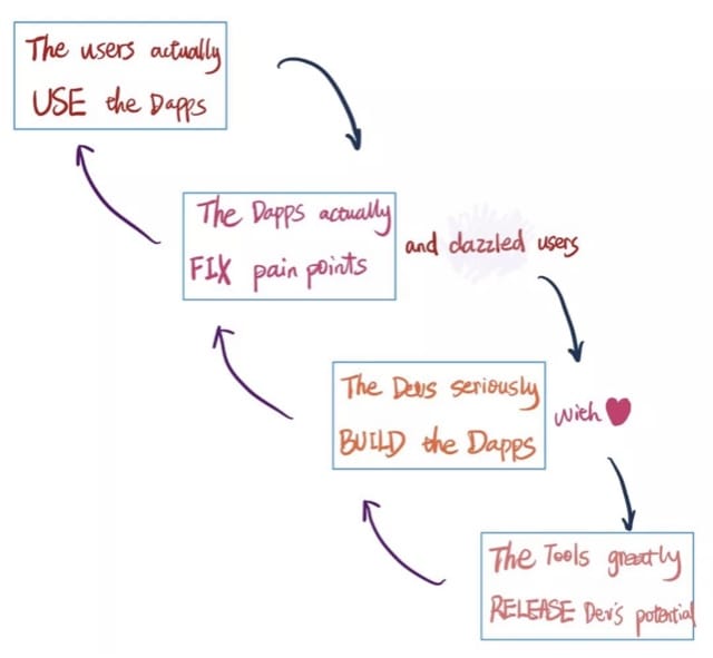By solving the missing part of the flow we will be able to create apps and products that users are excited about. If developers, and builders are not able to build these apps then blockchain will never hit its full potential and achieve mainstream recognition.