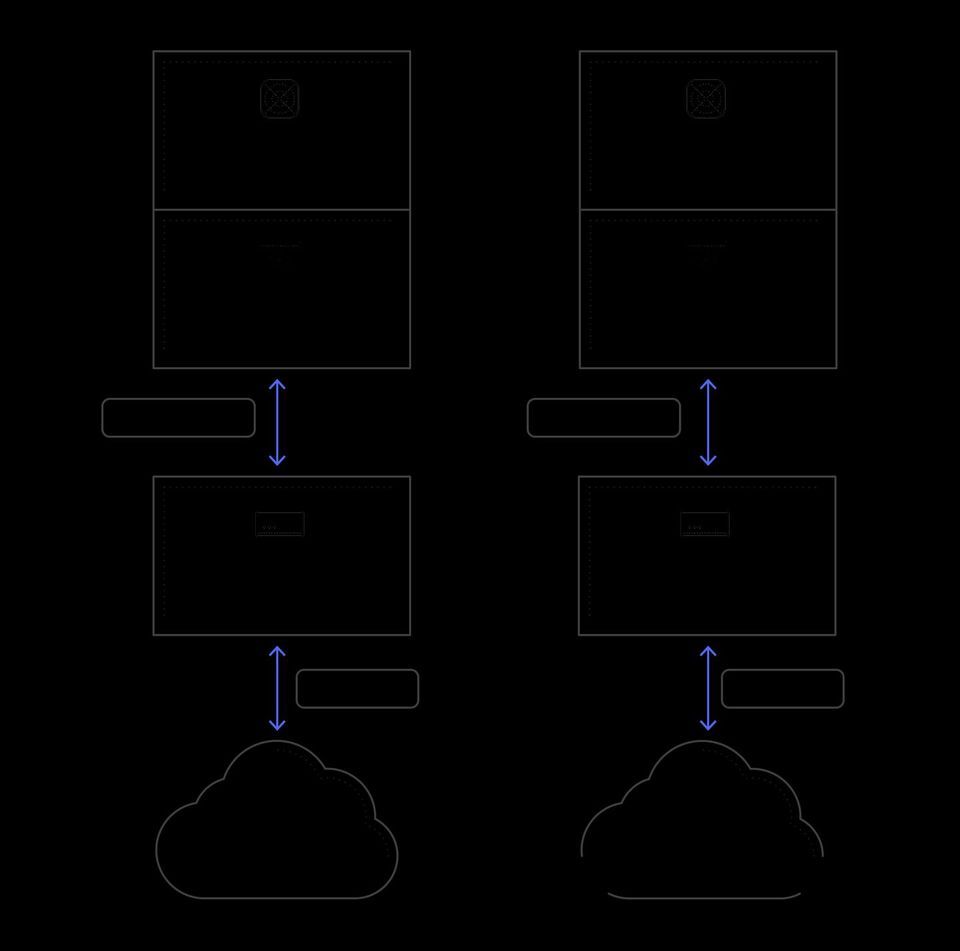 Shown below, since most web applications follow a similar design we have included a schematic diagram of a standard “internet application” on the left side, and on the right side we have detailed out a standard decentralized application.