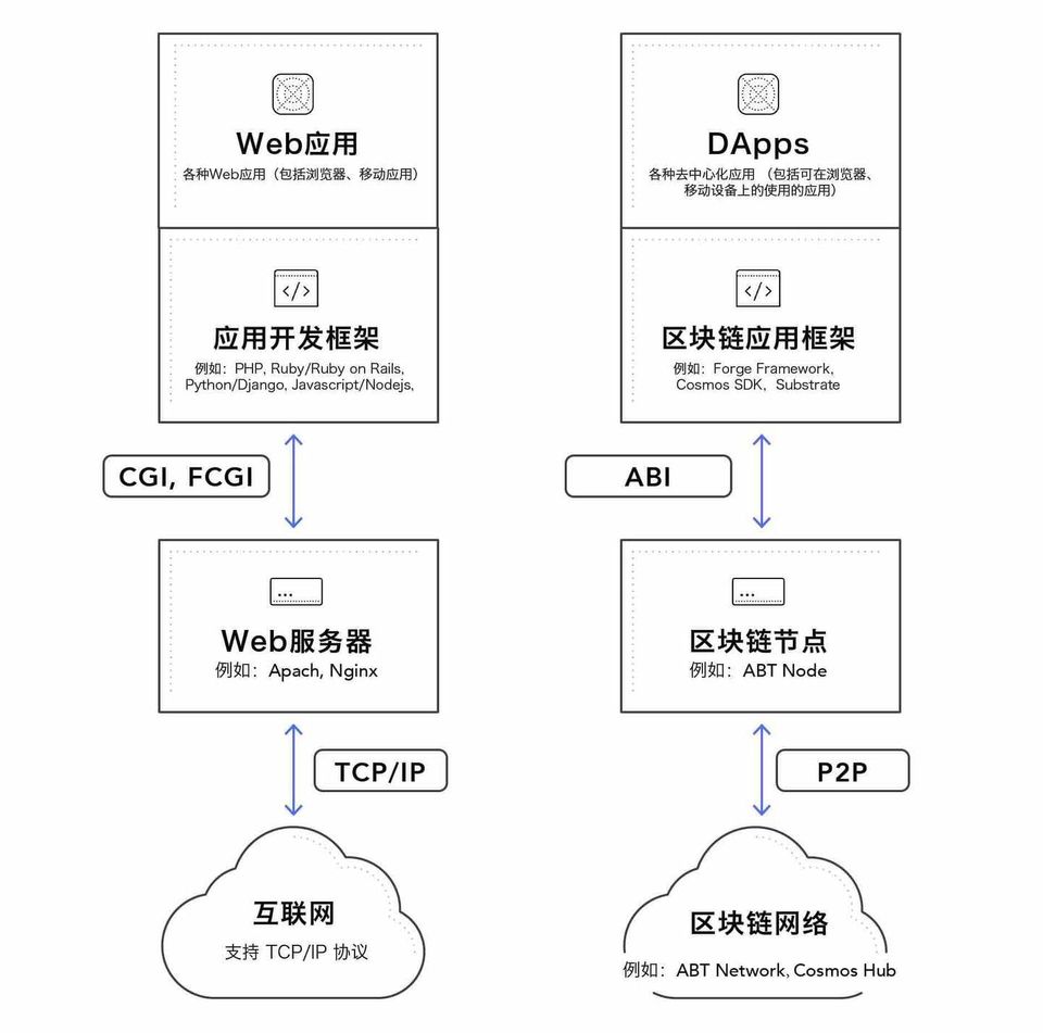 I wrote a special article "5 Graphics to Help You Understand Blockchain to compare the Internet era Web architecture with the current blockchain Dapps architecture, in fact, everyone has a lot in common.