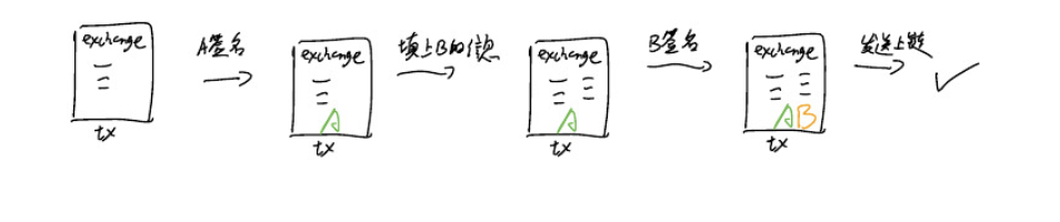 之前所有讲过的 tx 都只需要一个签名,而 exchange tx 则需要两个签名,因为是交换资产所以需要交换的双方都同意才行。