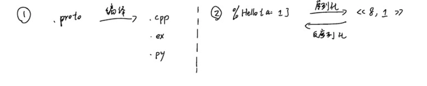 .proto文件中,然后用官方或社区提供的你要用的语言的插件将其编译成.cpp或.ex或.py文件中。 - 在你的程序中,用刚才生成出来的模块提供的序列化函数,将一个数据对象转化成二进制以便在网络中进行传输,接受方用反序列化函数得到的二进制转化回数据对象。