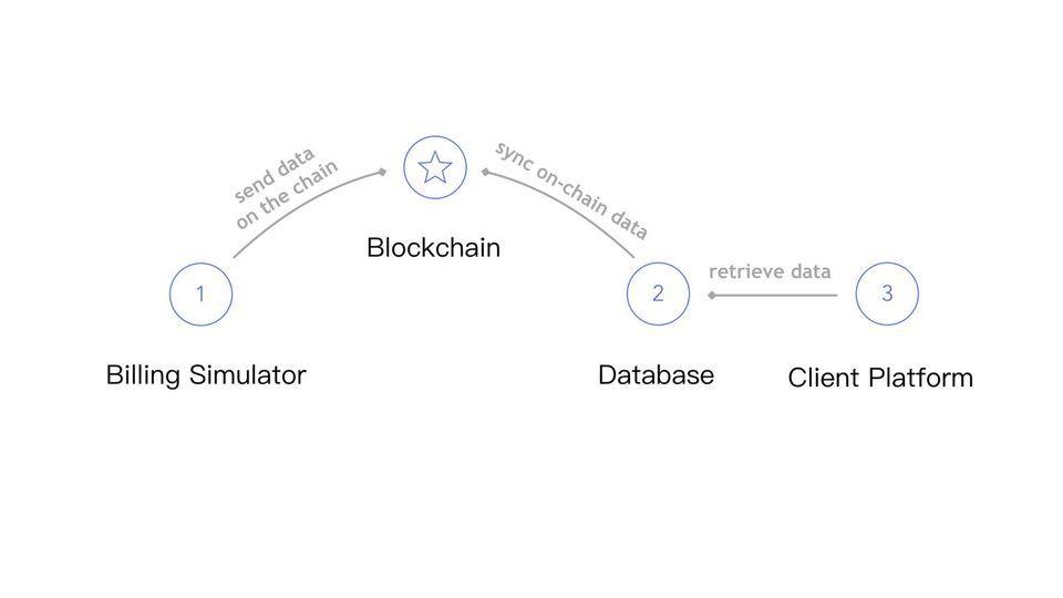 - Database. Built by sqlite3, the database synchronizes all transaction data on the chain, including the hash value returned from the chain after a transaction is successfully sent. Like everyone's fingerprint, the hash of each transaction is unique. We can easily verify each transaction on the chain through its hash. This database is for the convenience of building a client platform, that is the third part of my DApp --the presentation of bill. The structure of stored data by blockchain efficiently ensures the authenticity and verifiability of the data in all nodes, but it is not easy to perform efficient and complex queries. So for a better user experience, for displaying data in a more convenient way, we still need to retrieve data from a “middleman” --database.