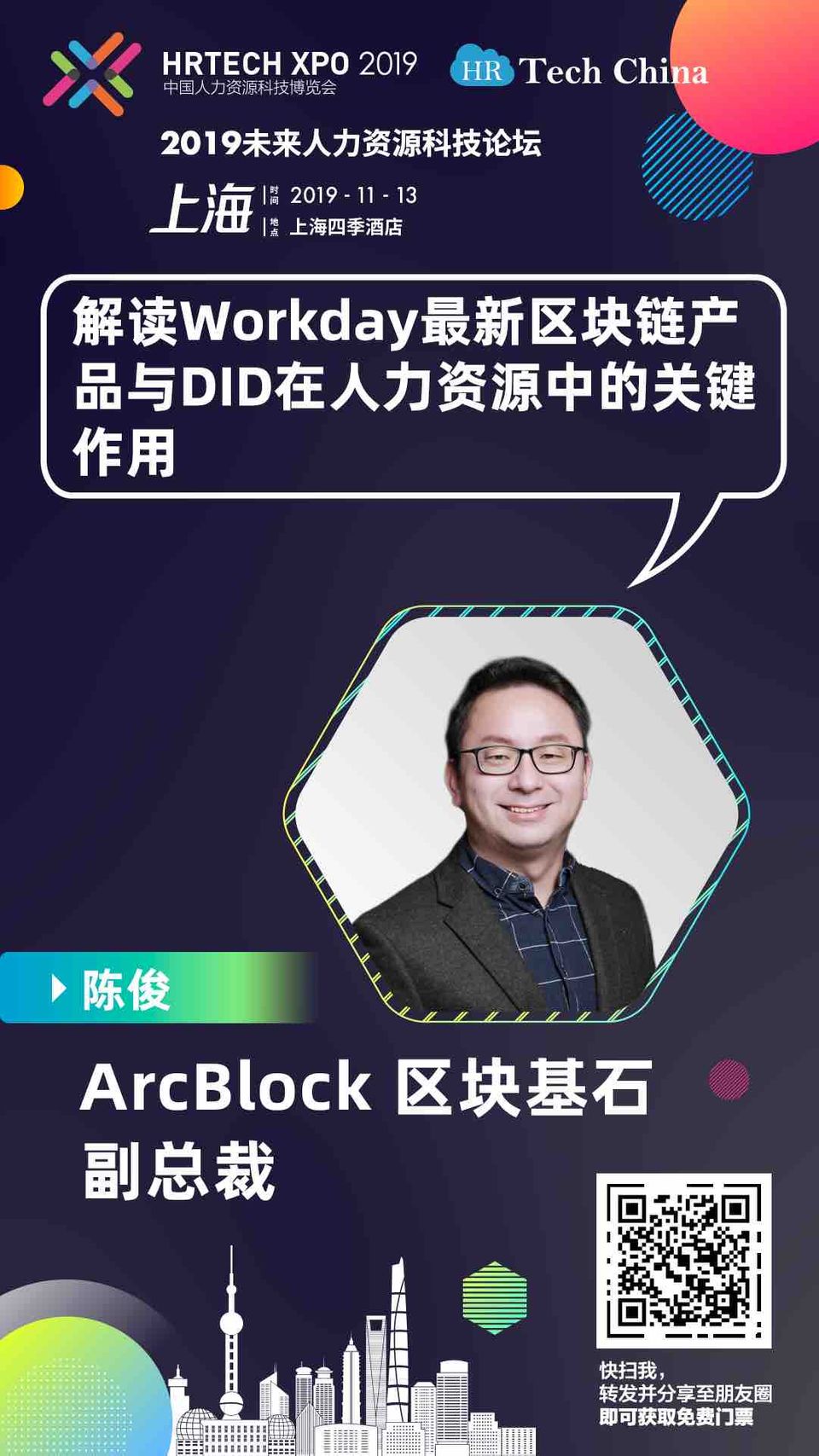 The 2019 Future HRScience Forum included more than 30 topics with guest speakers from companies such as Bayer China, LinkedIn China, GlaxoSmithKline, Ctrip Travel, Astor Sunshine, and ArcBlock to speak on topics such as digitalization, intelligence, best practices, trend analysis, and more. ArcBlock Vice President Chen Jun will shared the topic "Understanding the Key Role of Workday's Latest Blockchain Products and DID in Human Resources" during one of sessions in the main forum. The goal of the session was to introduce how blockchain and DID help address several long-standing pain points in the human resources space, as well as to showcase ArcBlock's newly developed decentralized identity (DID) technologies and solutions.