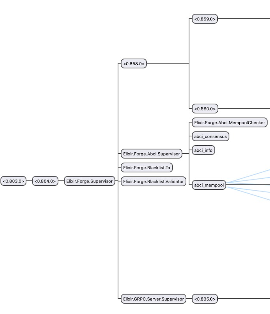 Using Erlang/OTP allows a blockchain framework to have a very important advantage over other languages — flexibility. As a blockchain framework, Forge by design is open to extension: you can extend the framework by adding more applications to implement more complicated features, like using a different consensus engine.