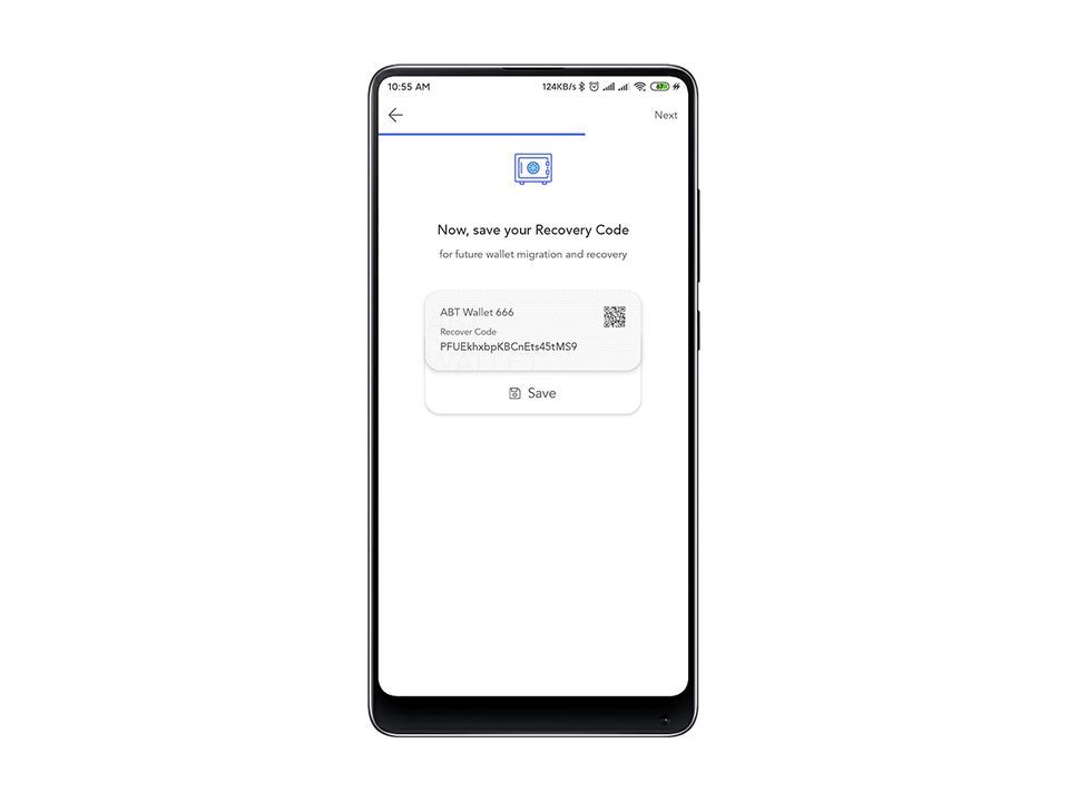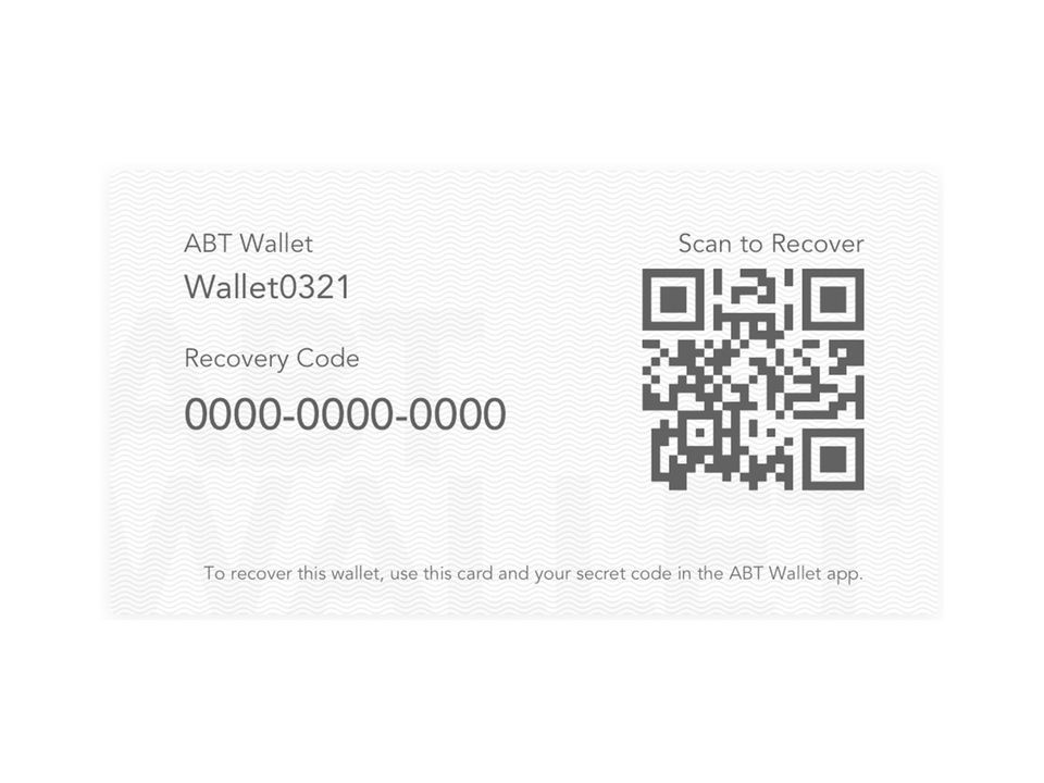 Recovery Code It is a string of strings uniquely generated by a random algorithm. Users do not need to memorize this random character. The ABT Wallet requires that the user save the QR code card that is generated during the setup process by generating a two-digit code card.