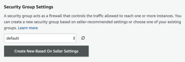 - For the Security Groups settings, click on the button labeled, “Create New Based on Seller Settings.”