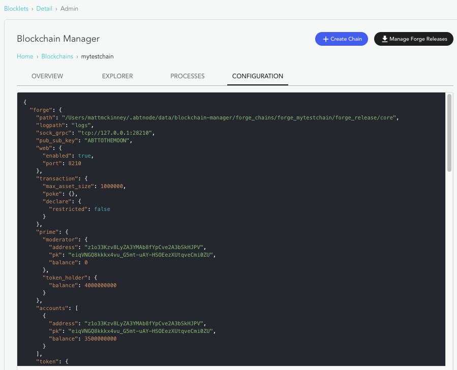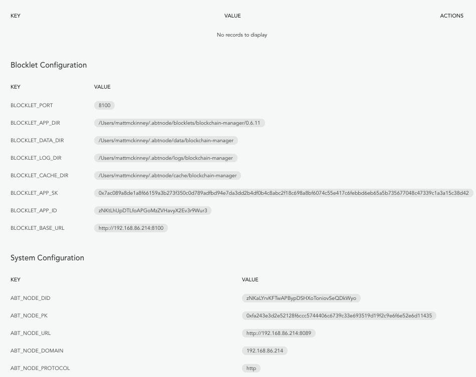 The configuration tab includes key information about your blocklet including port, directory, based URL and more. Be sure to look over this page to familiarize yourself with it.