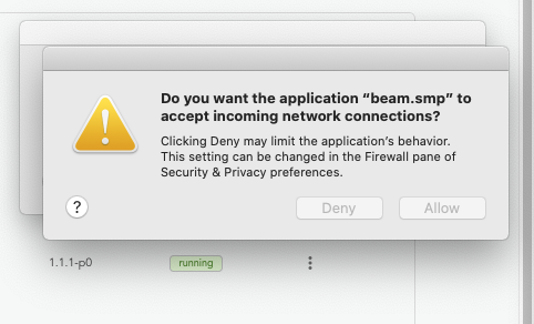 - If you are running your ABT Node locally on your device you may need to allow the application to accept incoming network connections. Click on allow.