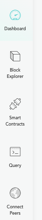 In this view, you can see the number of blocks generated on your chain, transactions, validators and more. In addition, you can see top account holders including our previously created moderator address and token balance from when we created the chain. On the action bar located on the left-hand side, you will also see some additional options and views for your blockchain.