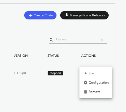 - Once your chain is created, you will need to start it. On the right-hand side, select the action menu and click on start.