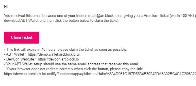 9 days and counting,ArcBlock DevCon 2020 is fast approaching and with ArcBlock's unique tickets, VIP participants can easily transfer premium and free tickets to friends and family with ABT Wallet.