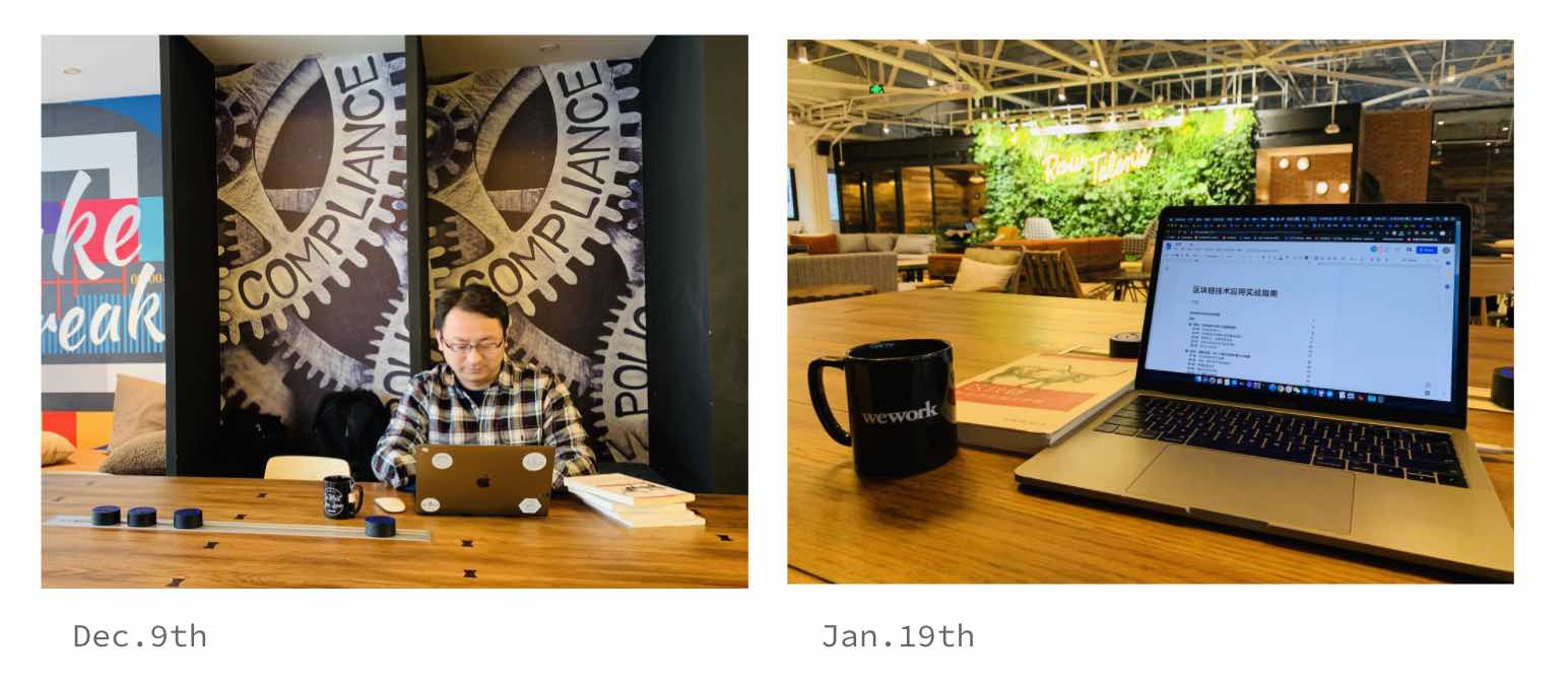 北京回来后,老冒和我立即投入《区块链实战》一书写作之中。由于时间紧、任务重,我们专门组织了一个写作班子以展开多线程工作,正如书末致谢部分写到——