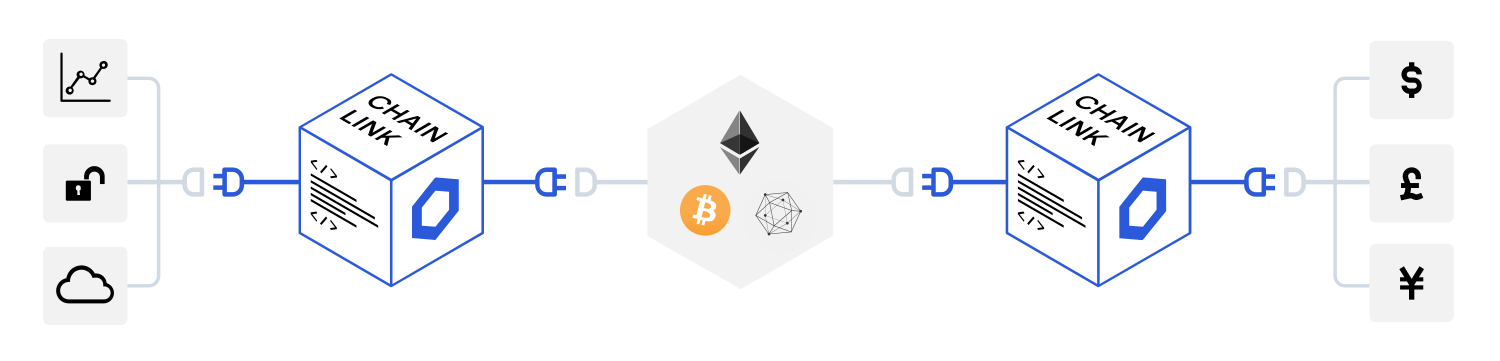 The above working principle is demonstrated in this Chainlink diagram. Chainlink is similar to Oraclize, both of which have designed a framework, part of which is a smart contract code template on the chain, and the other is a program that provides API calls off-chain, in order to simplify development, applications on the chain only need to call its smart contract.