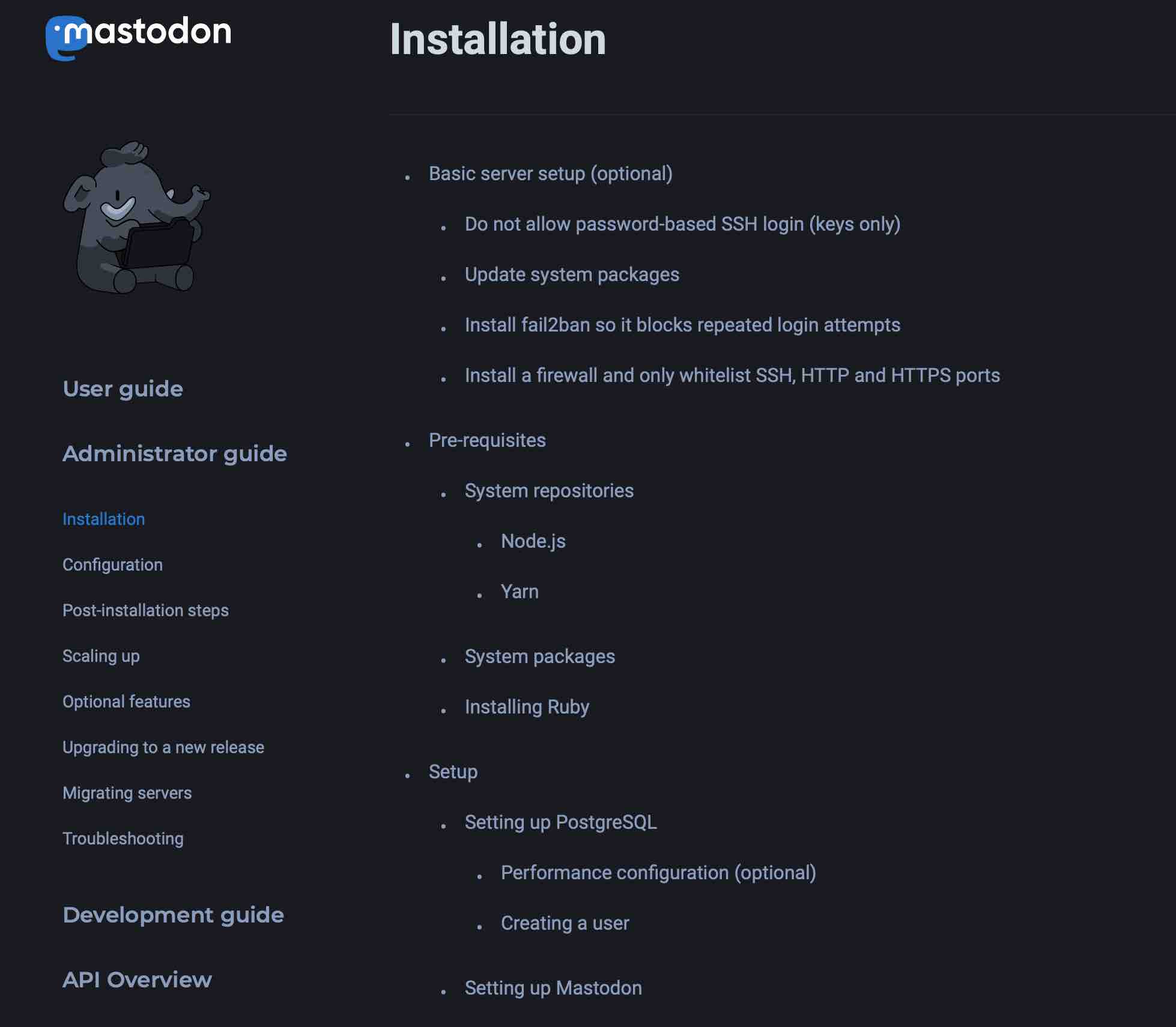 一些去中心化应用,例如猛犸象(Mastodon)这个去中心化社交网络, 可能是目前去中心社交应用中用户数量最多的一个,但是用户如果想去安装自己的一个节点,会迅速发现这是一个非常复杂的步骤,没有基本的网络、系统管理甚至开发经验,根本没有办法去成功安装起来。