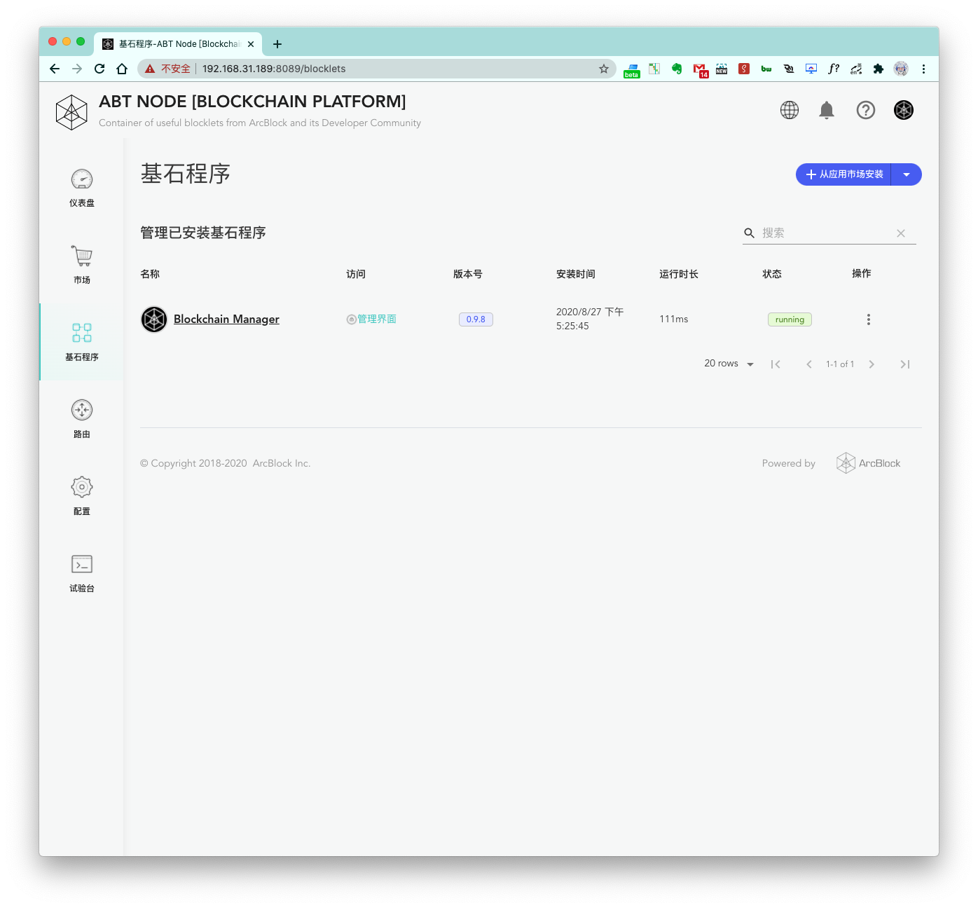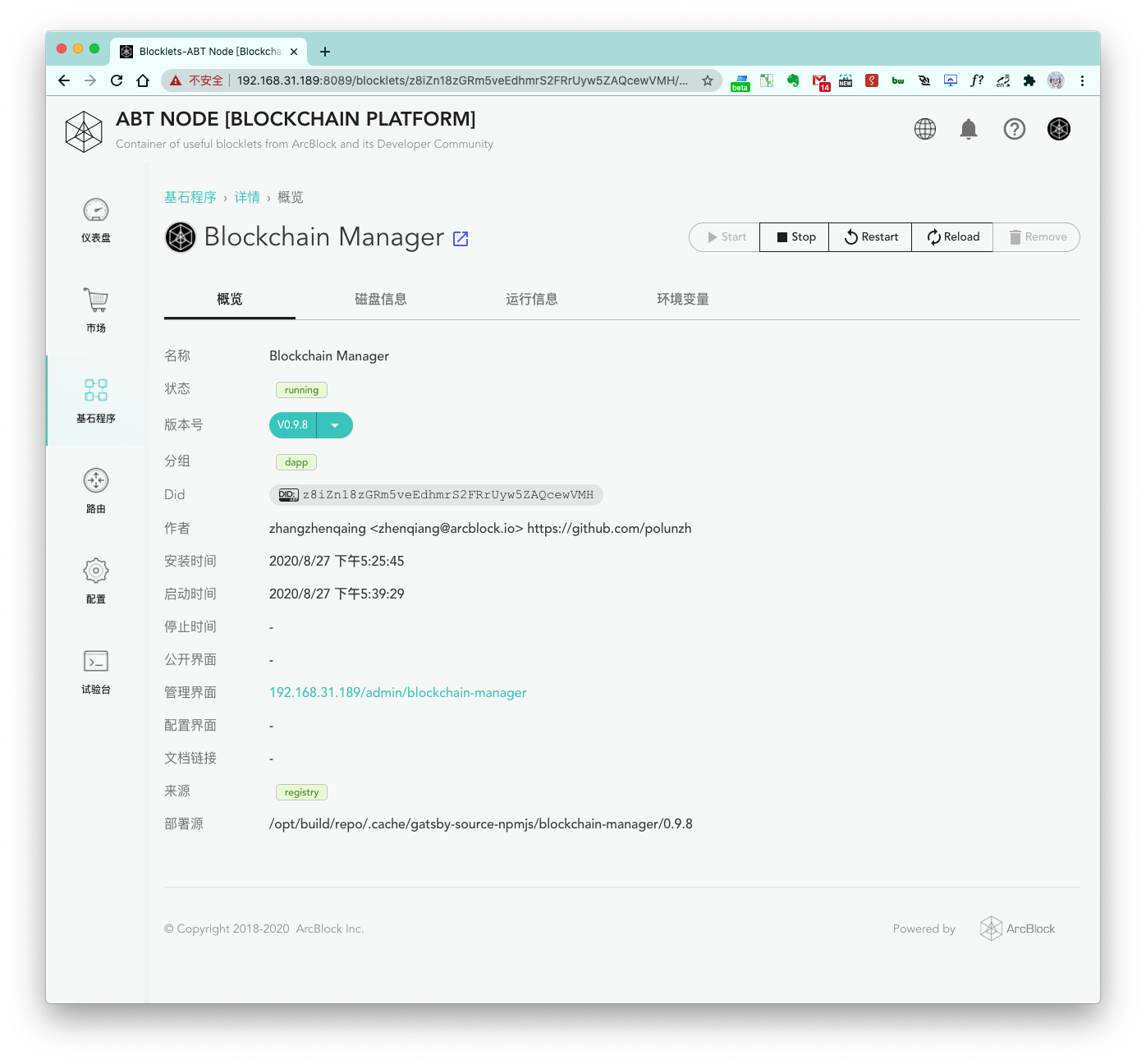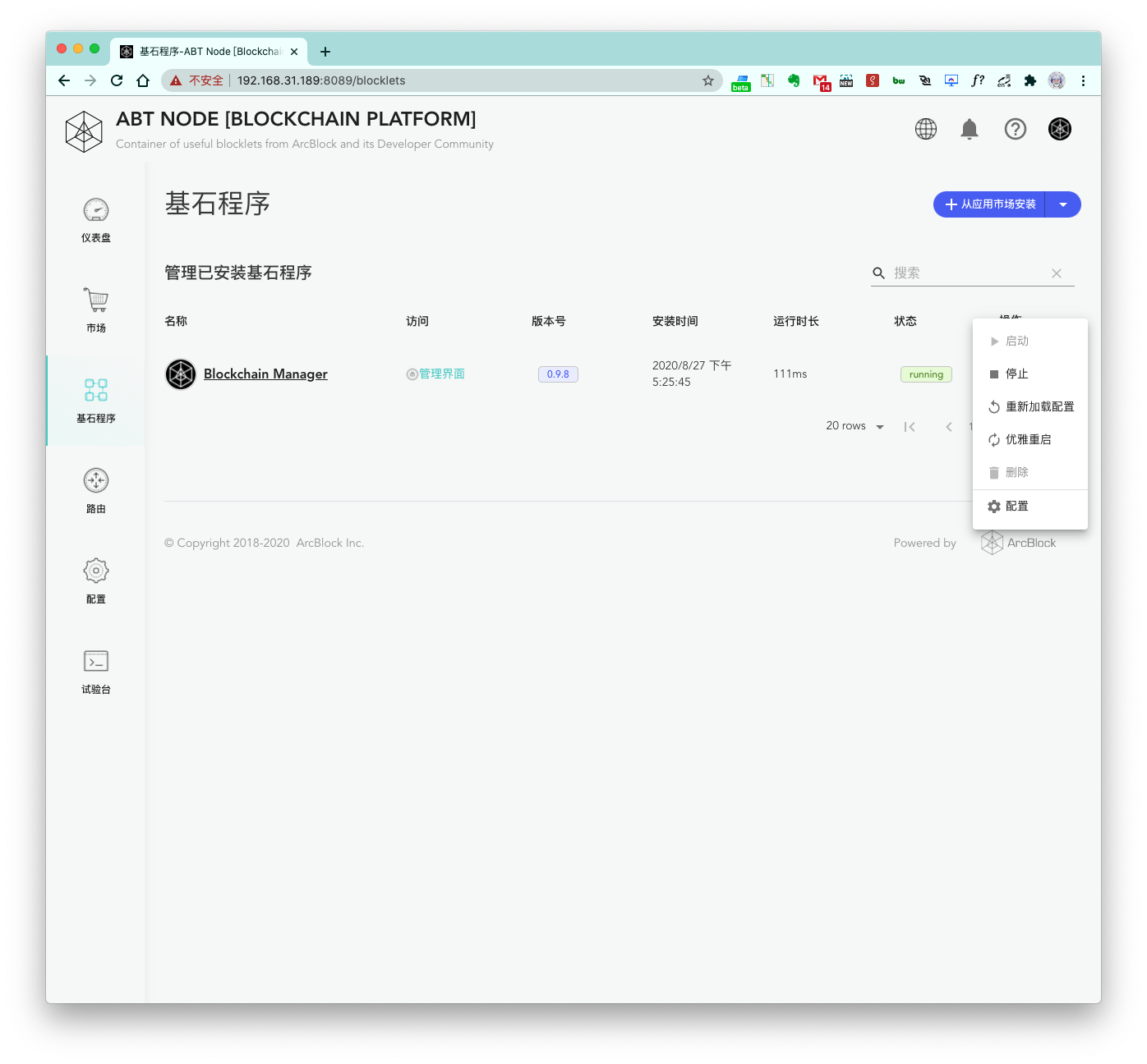 基石程序列表页面,我们可以看到当前 Blocklet 的一系列属性: