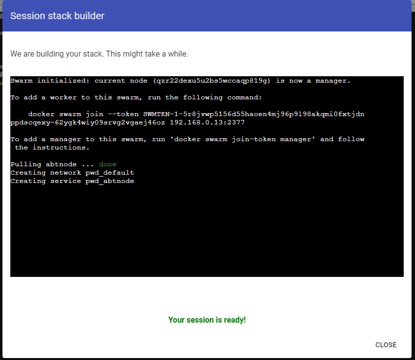 - To get started and launch ABT Node using Play with Docker click the link here.