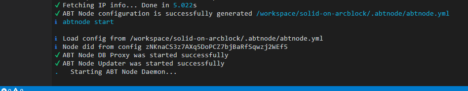 - Now, the terminal window will show you two URLs. One URL is for the ABT Node dashboard and the second is to review the web GUI of the Solid Server.
