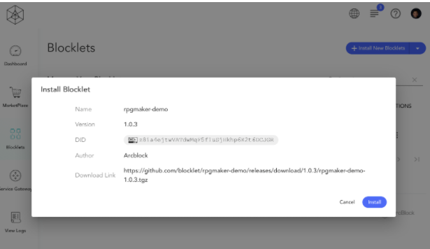 The RPG Maker demo blocklet will show up in your blocklets list and you can start after install finished.