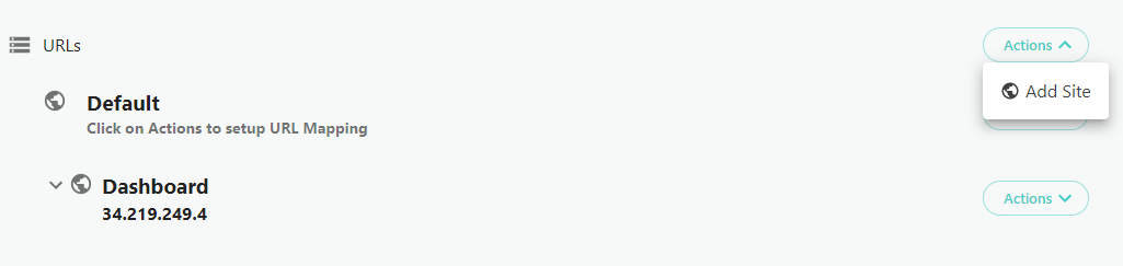- The Service Gateway enables to easily add a new domain. In the URL section, click on Actions to option up the drop down that enables you to Add Site. Note, you do have the ability to add aliases, sub domains and URL redirects in the Service Gateway. We will show you how to complete those steps in future walk-throughs.