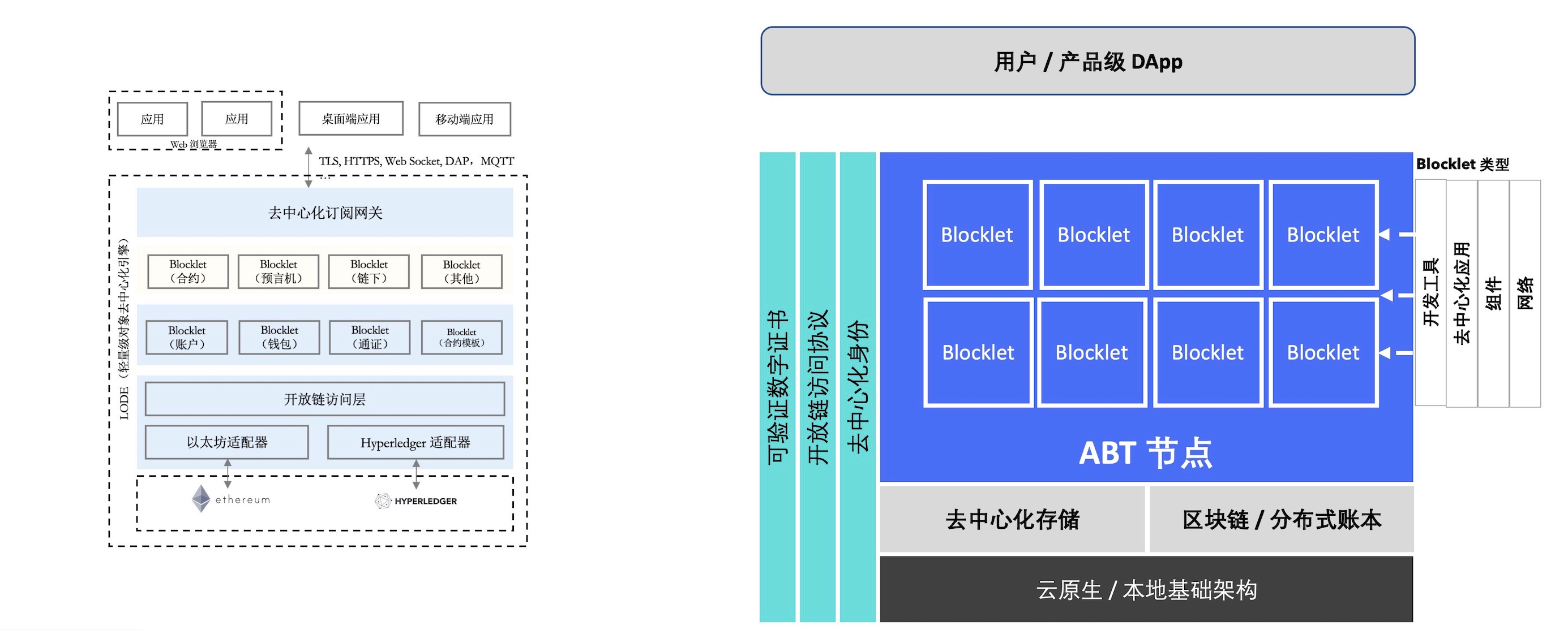 ABT 节点本质上是一个 Blocklet 的运行环境,一个用户友好、易操作的微服务操作系统——用户可以很容易地在节点安装卸载 Blocklet ——现在,Blocklet 即可从 ABT 节点里的 Blocklet 市场上一键下载安装;此外,开发者和团队还可以轻松地为其项目开发和注册其 Blocklet 或在 Blocklet 市场上转售给其他开发者。对开发者来说,这些 Blocklet 如同乐高积木,只要做基本选择即可。一旦这些应用被安装就属于用户,而可以不需要依赖于其他服务,成为完全去中心化的应用。Blocklet 不但可以和区块链互操作,而且可以和区块链以外的服务,如数据库、API 等互操作,并且 Blocklet 协议不限制其实现的语言、框架和用户界面,具有非常强的灵活性和非常广泛的使用空间。