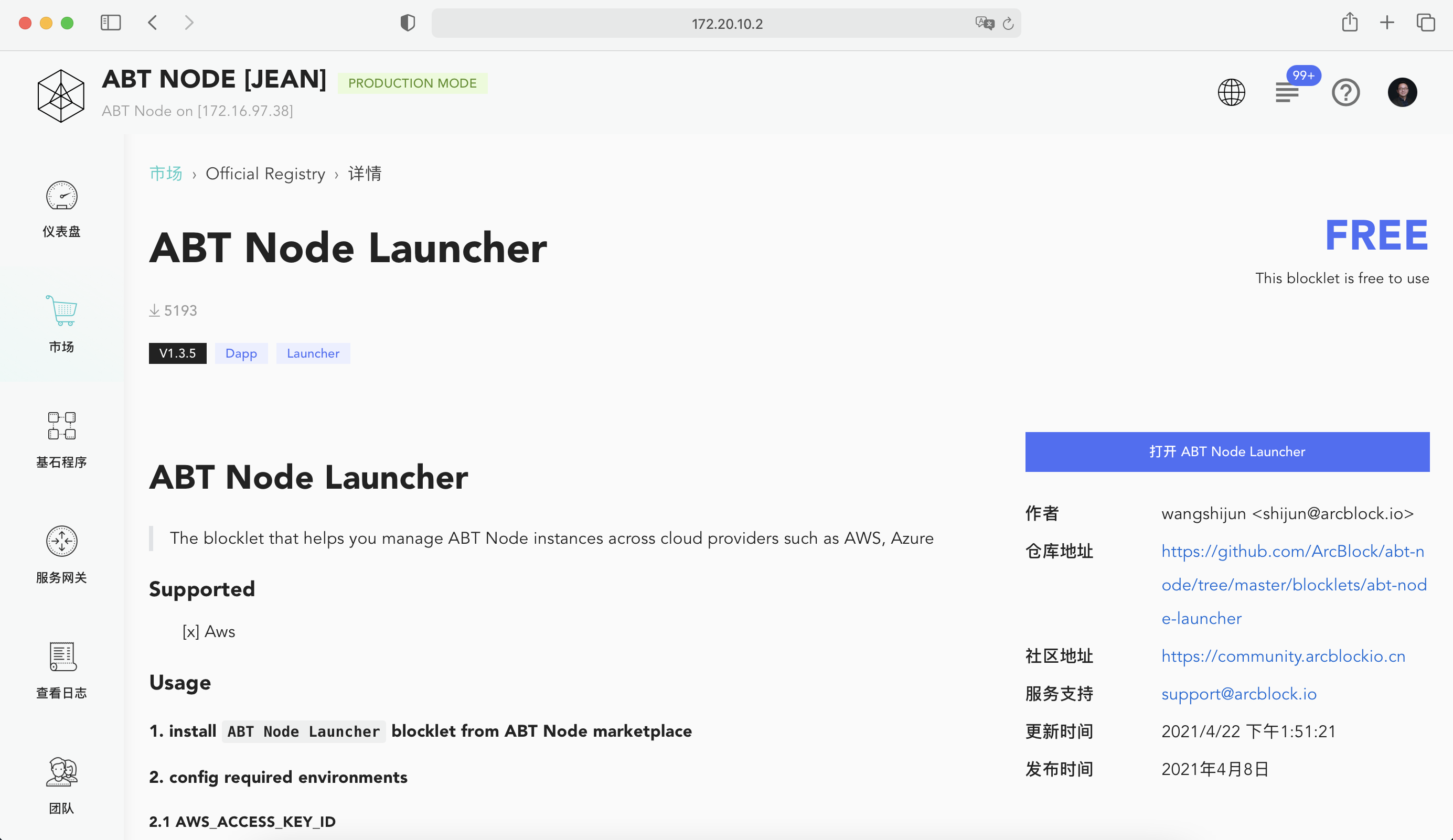 可利用 ABT Node Launcher 在 AWS 等云平台启动运行节点