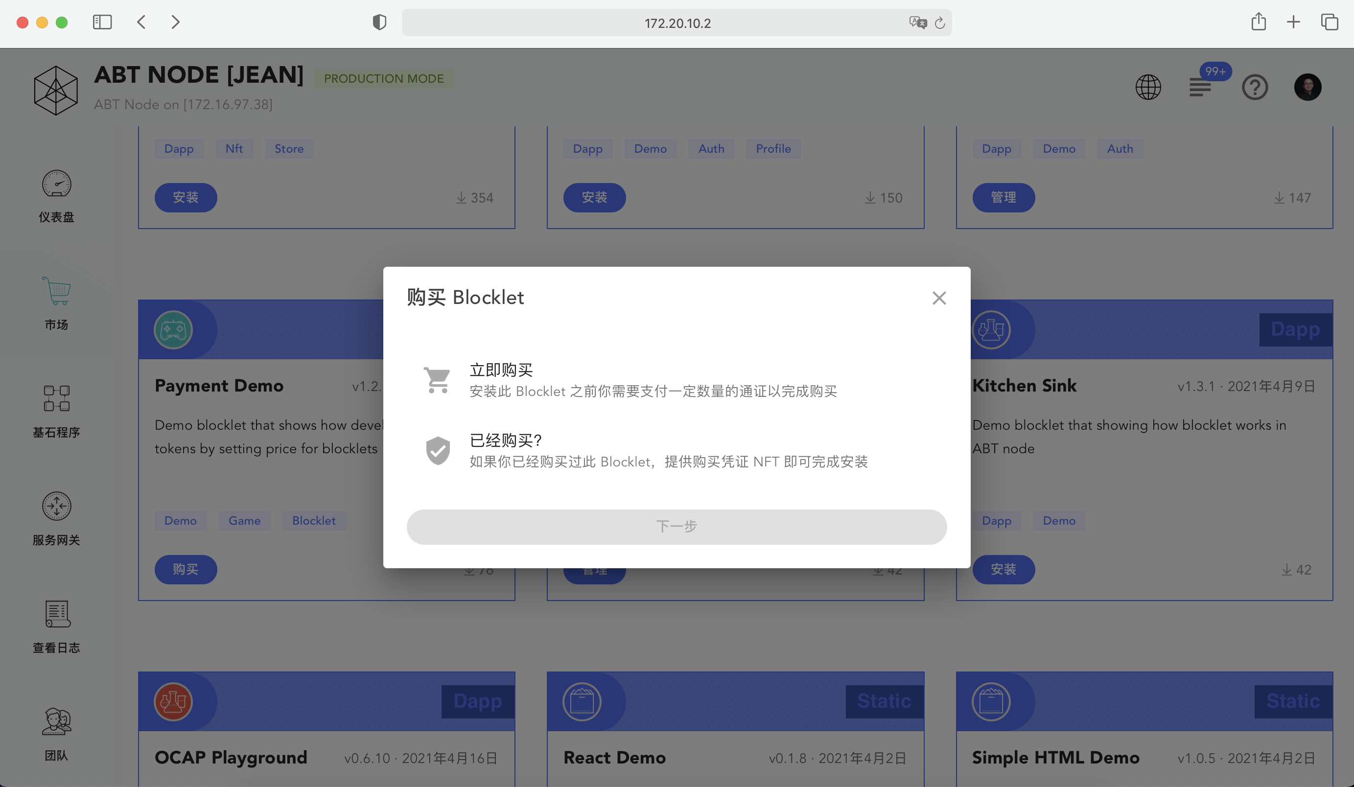 可支付购买 Blocklet 市场上的付费 Blocklet