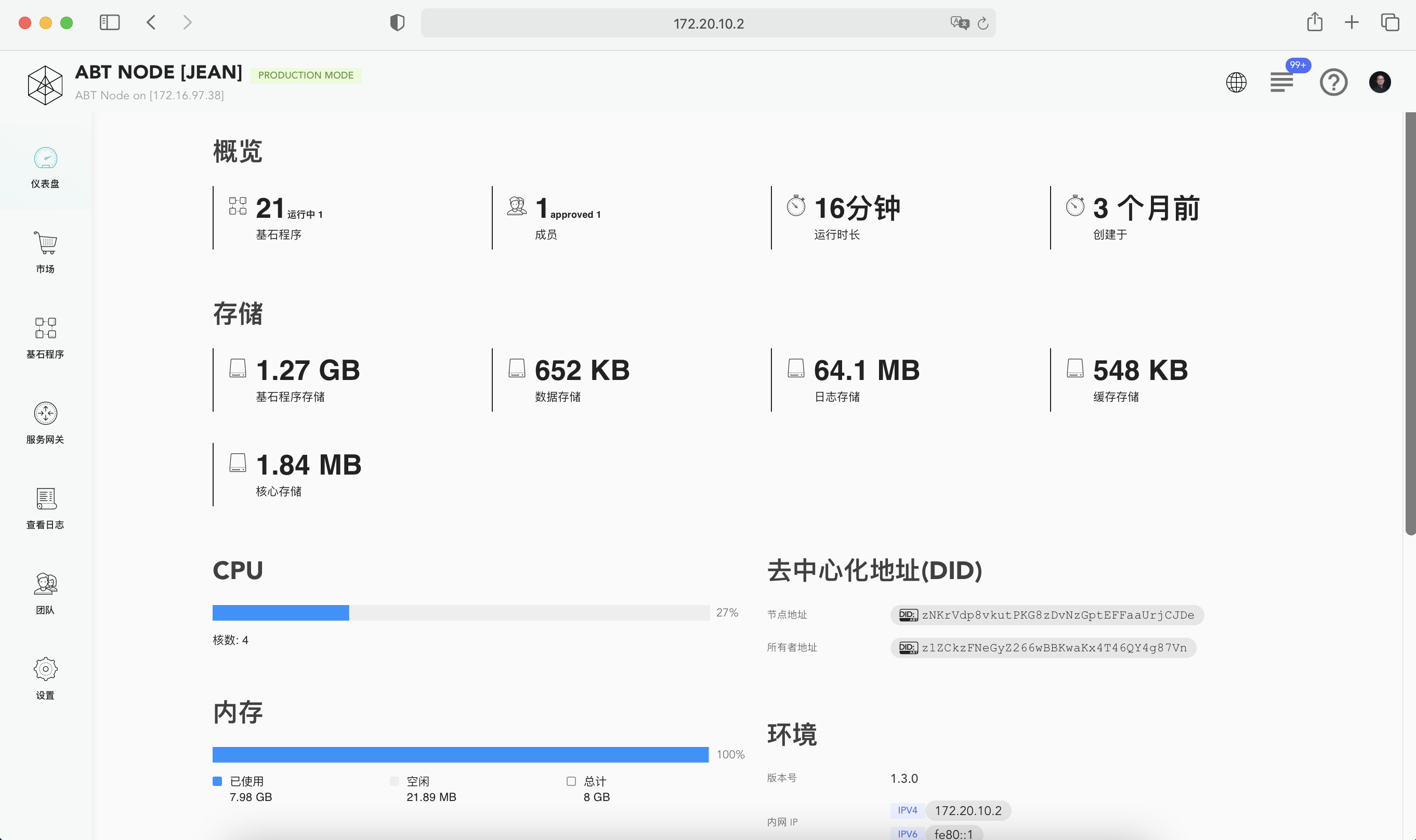 ArcBlock 的 ABT 节点和 ABT 通证机制可谓是去中心化应用皇冠上的明珠,ArcBlock 的 ABT 节点解决的最大的问题就是 “去中心化部署”。 在 ArcBlock 平台上,用户只需要付出 ABT 通证,就能全自动获得 ABT 节点的节点资源,这些节点的安装、部署、启动、管理全部是自动化的,用户通过 NFT 来证明自己对节点和服务的使用权。