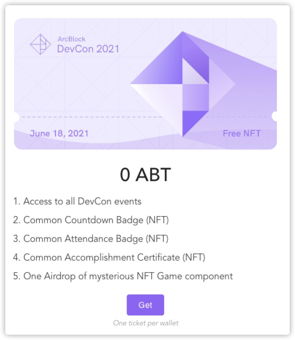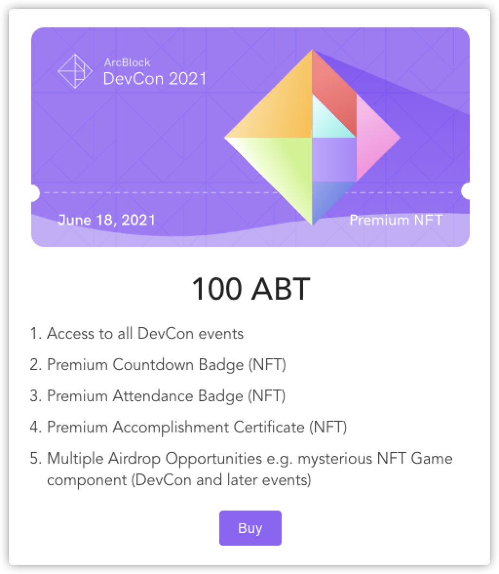 NFT tickets for the ArcBlock 2021 Developers Conference will be on sale from now on. Participants can purchase premium tickets that include multiple airdrop opportunities such as premium NFT badges, certificates, and mysterious game NFT parts.
