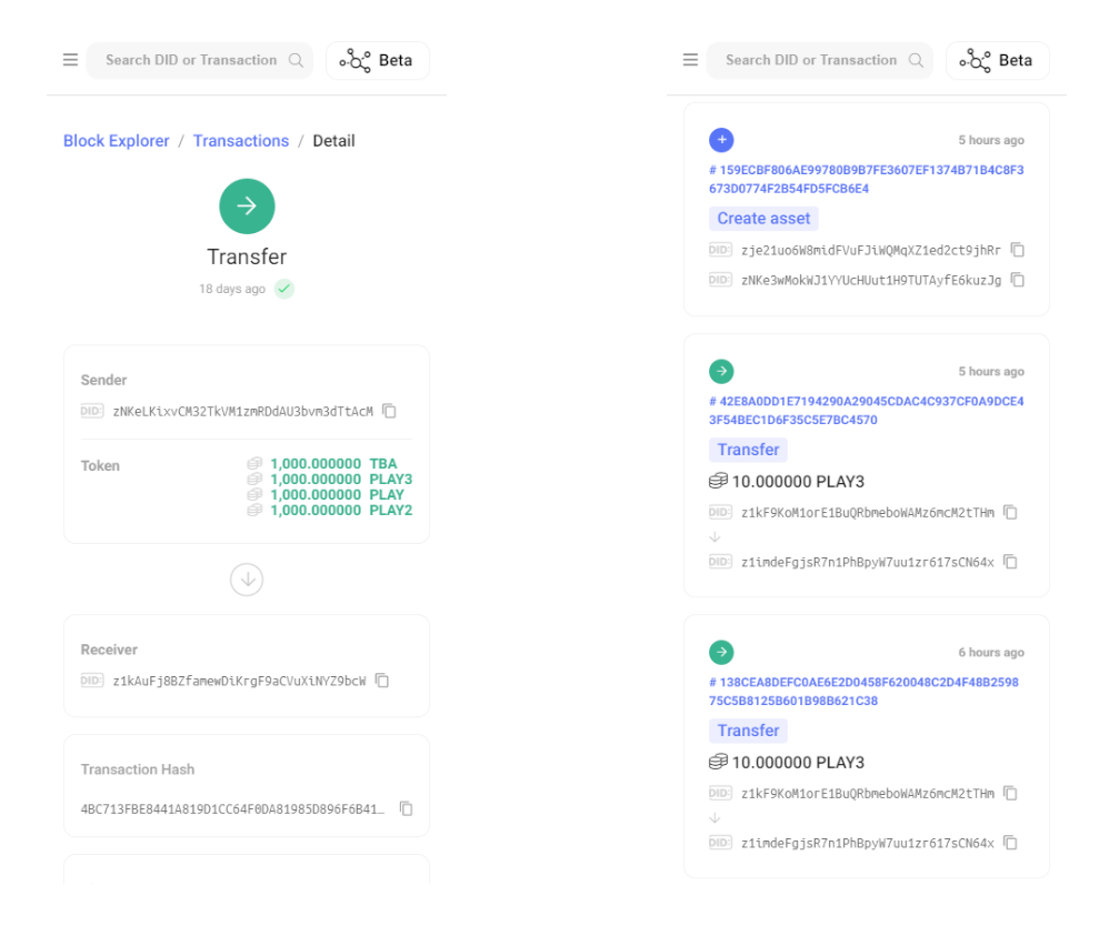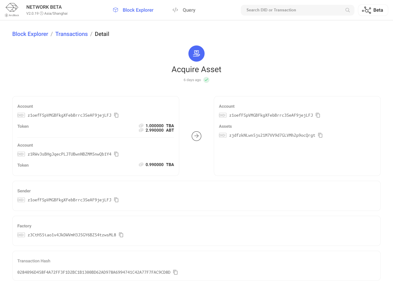 For transaction types such as Transfer V3 and Acquire Asset V3, the new version of Block Explorer presents the transaction details in a reasonable and clear manner.
