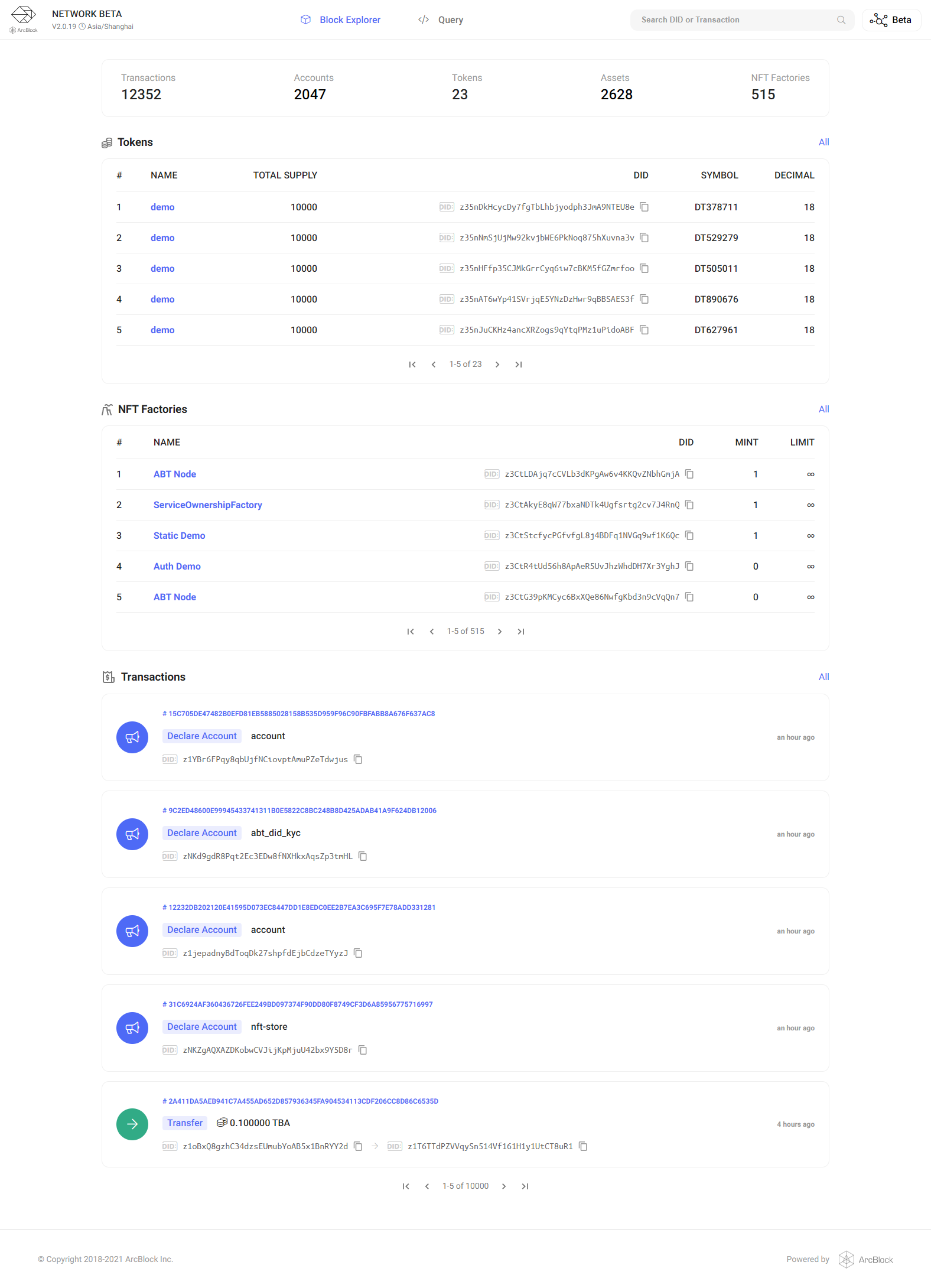 In addition to many improvements in terms of interface design and usability, the biggest improvement of ArcBlock block explorer is the support of ArcBlock's next generation blockchain engine, thus adding many features of the underlying chain based on the first generation Transaction Protocol, such as support for various tokens, including user definable Fungible Token and None Fungible Token support.