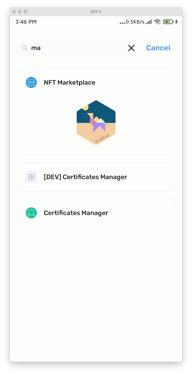 Users can enter the name of the dapp or the DID of the dapp to search for the desired dapp.